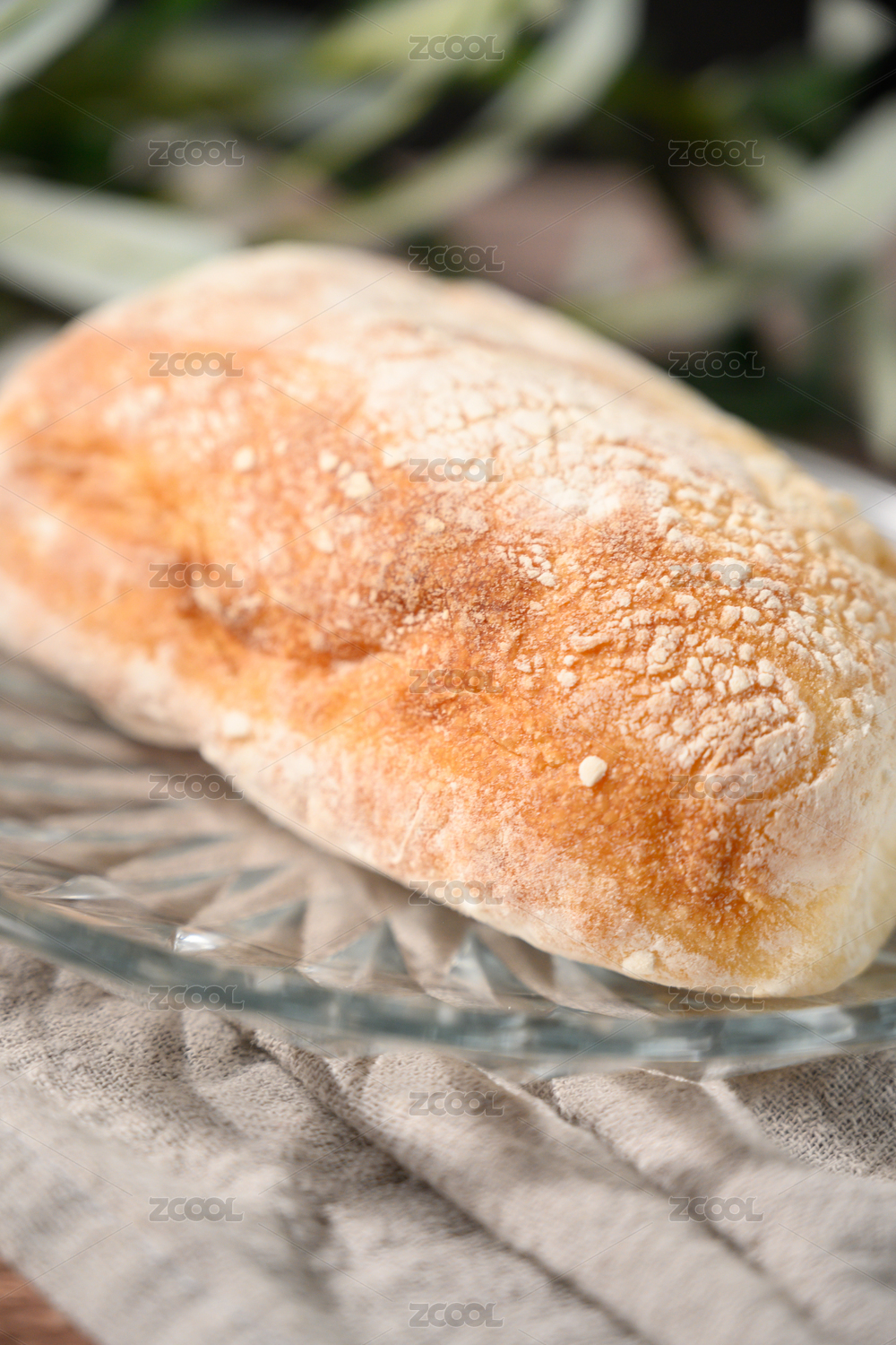 桌面上的盘子里的美味可口的恰巴塔面包