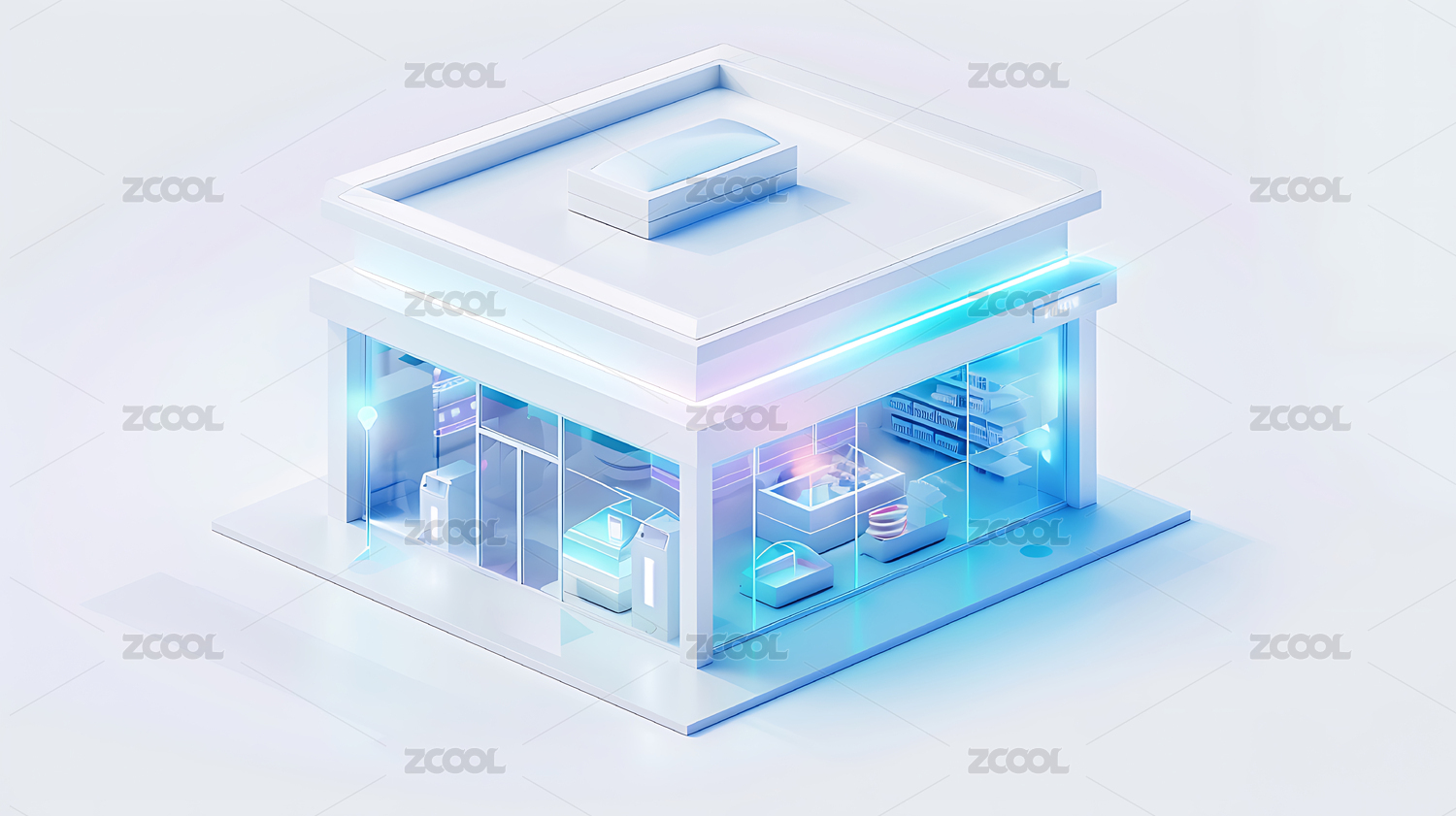 3d透明玻璃感商店图标背景
