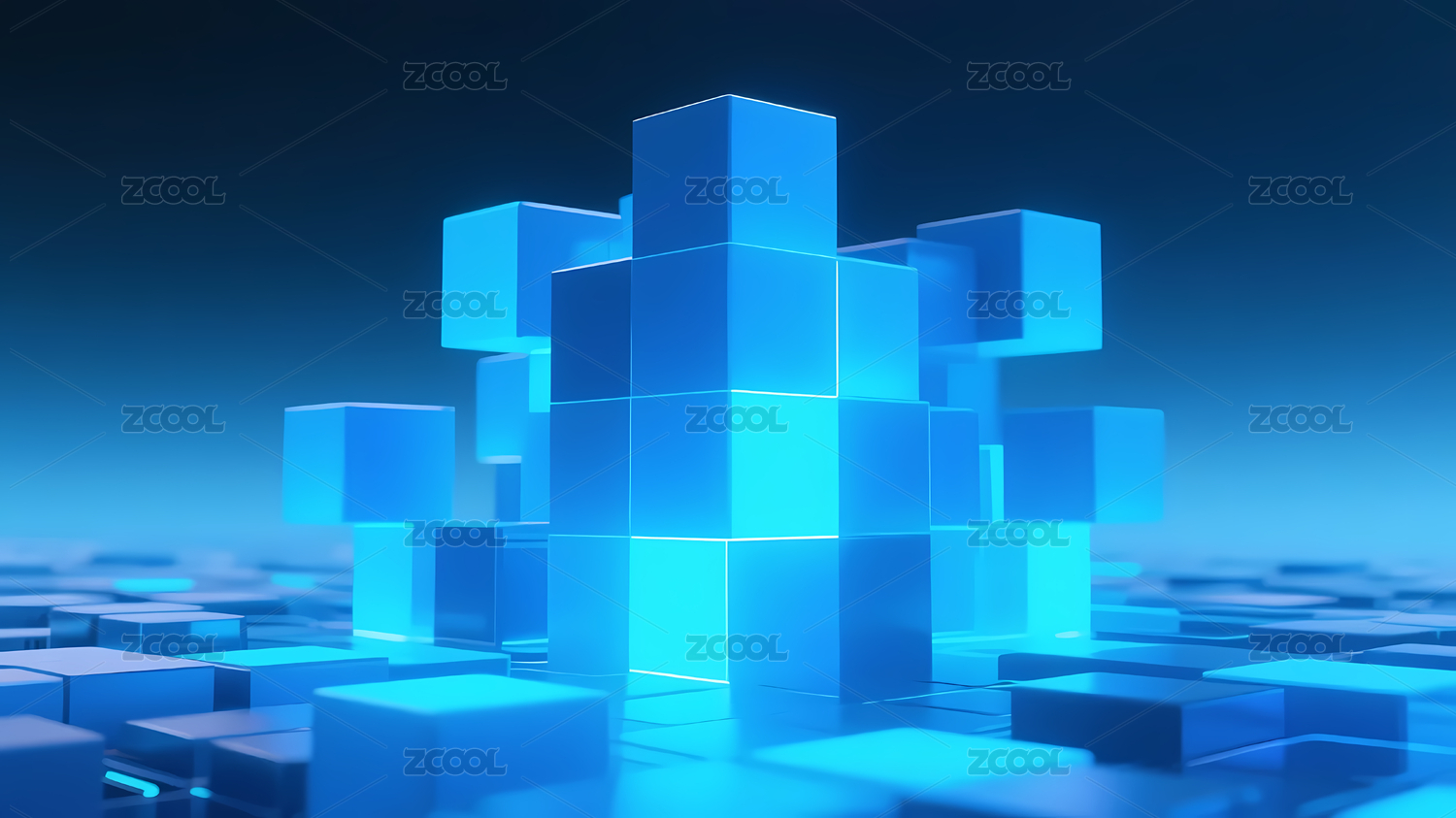 透明立方体堆叠抽象蓝色背景