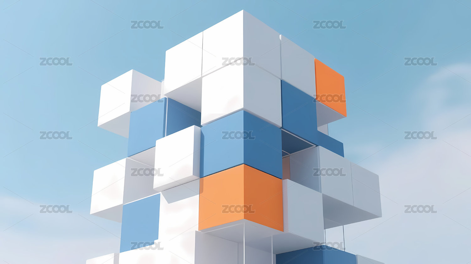 方块堆叠雪山蓝天背景