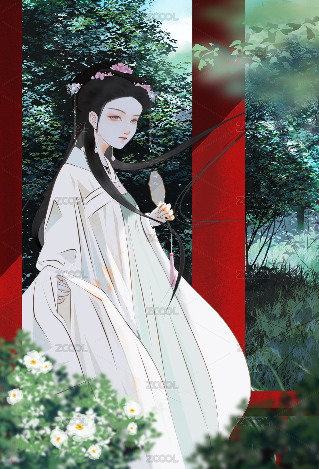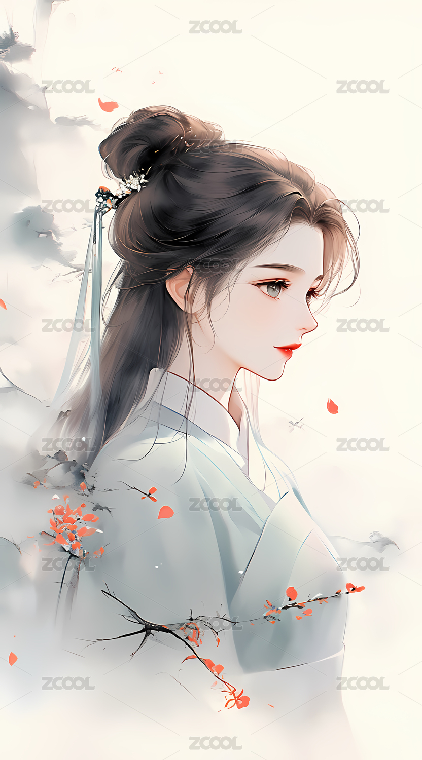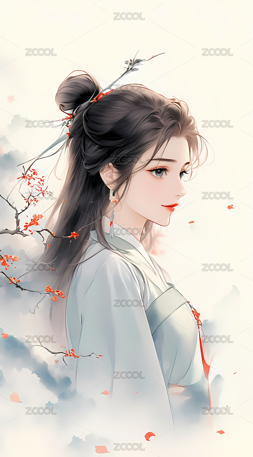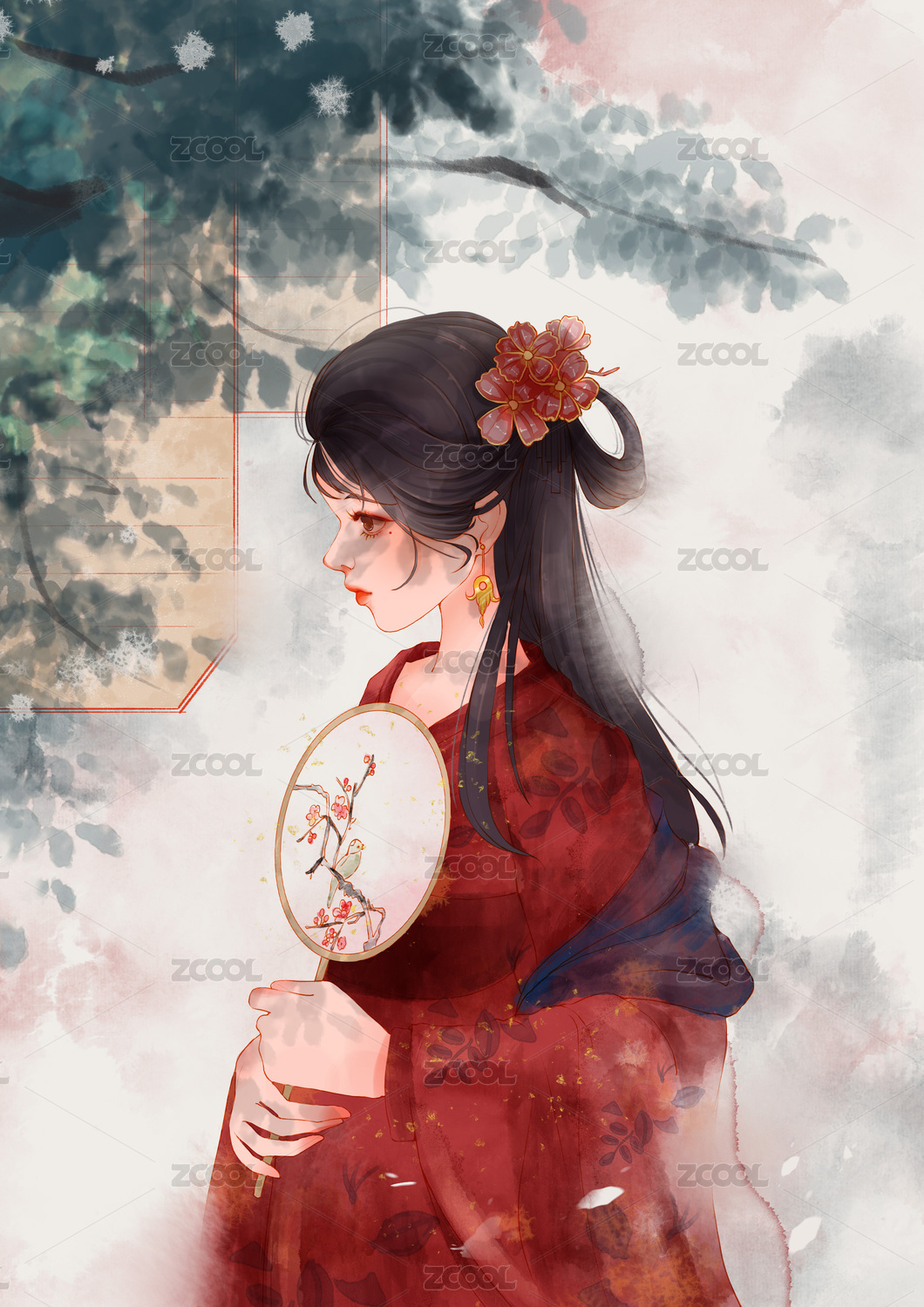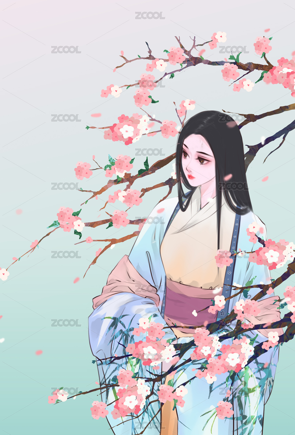 人物,女人,女子,女性,浪漫,花瓣,花,梅花,二次元,立绘