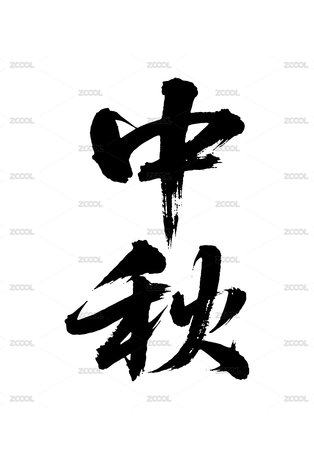 中秋矢量书法手写毛笔字