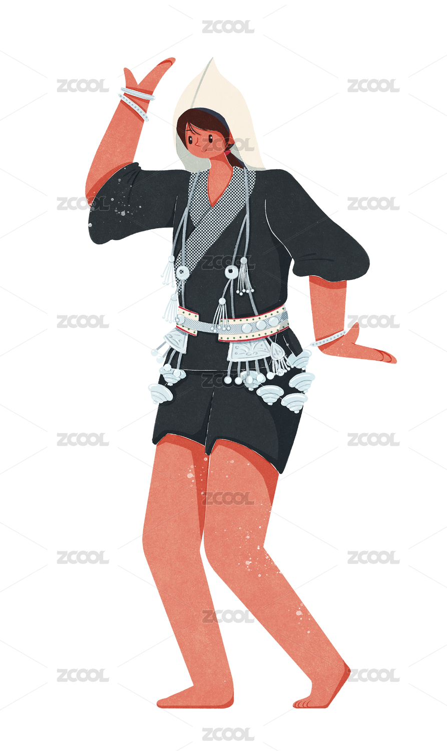 插画,卡通,扁平,少数民族,民族,传统文化,特色,黎族,海南,赤脚