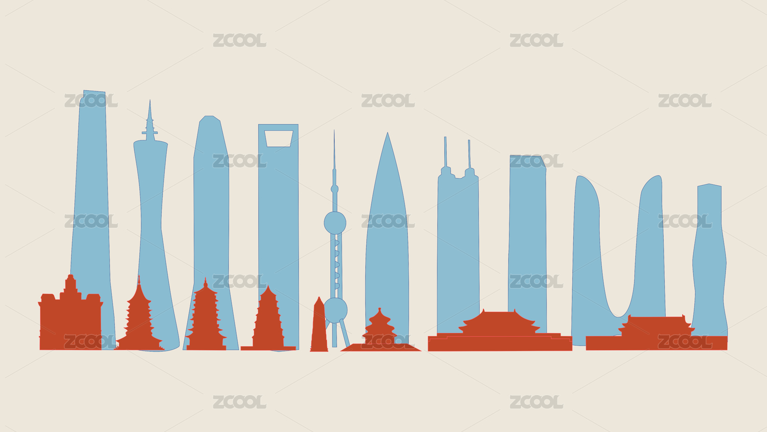 插画,扁平,国风,国潮,中国城市,上海,广州,北京,都市风景,著名景点