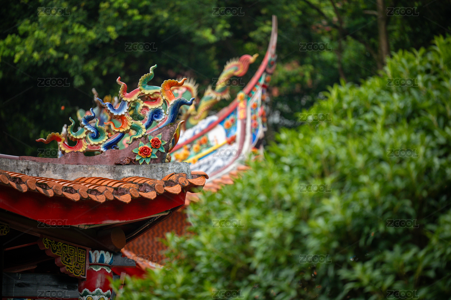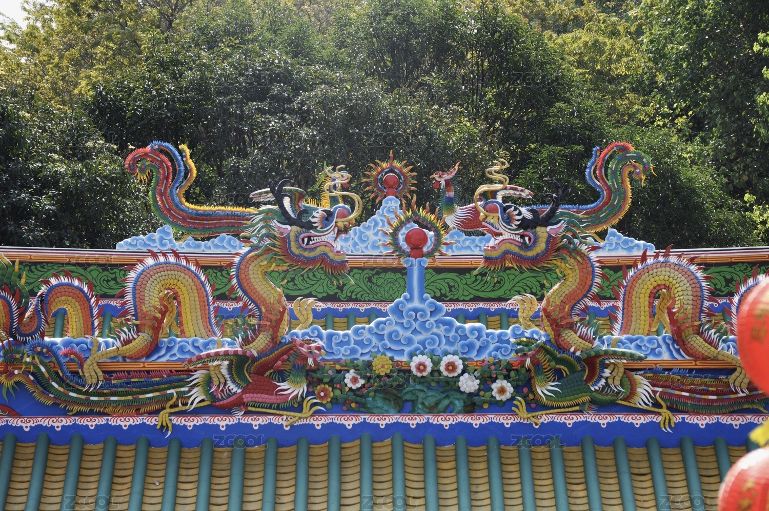 中国福州古建筑坡屋面顶的琉璃彩塑