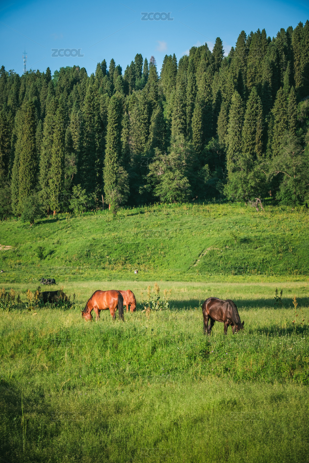 重庆,武隆,仙女山,高山草原,树,阳光,动物,牧场,放牧,吃草