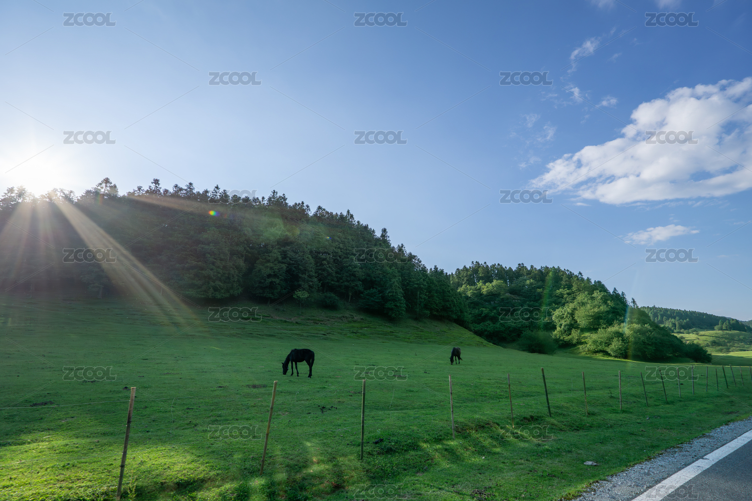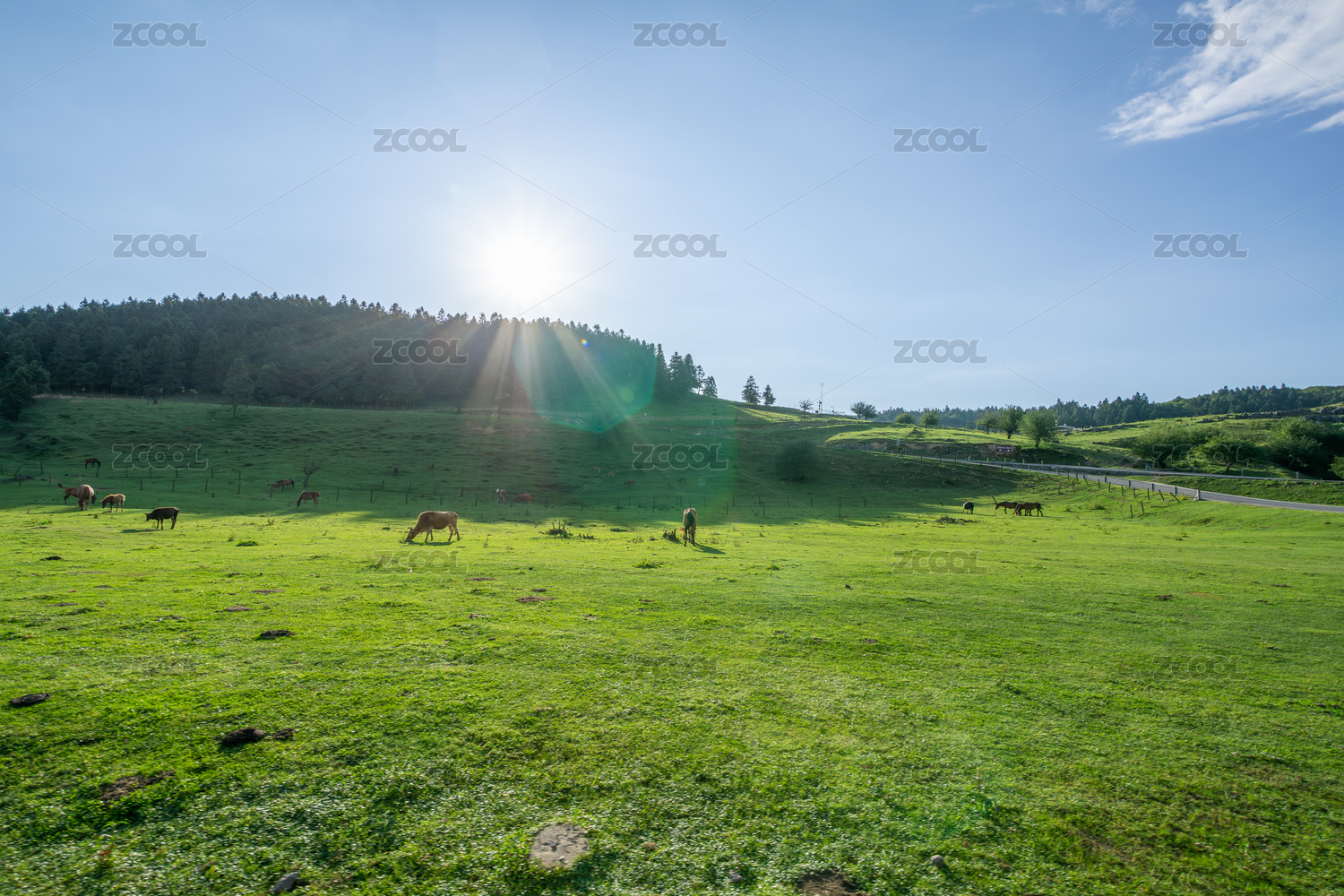 阳光下的绿野牧场