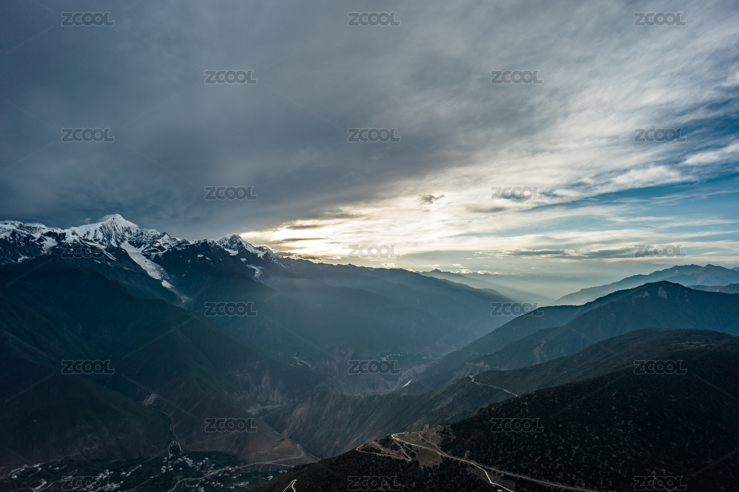 三月云层下的梅里雪山十三峰日出日照金山