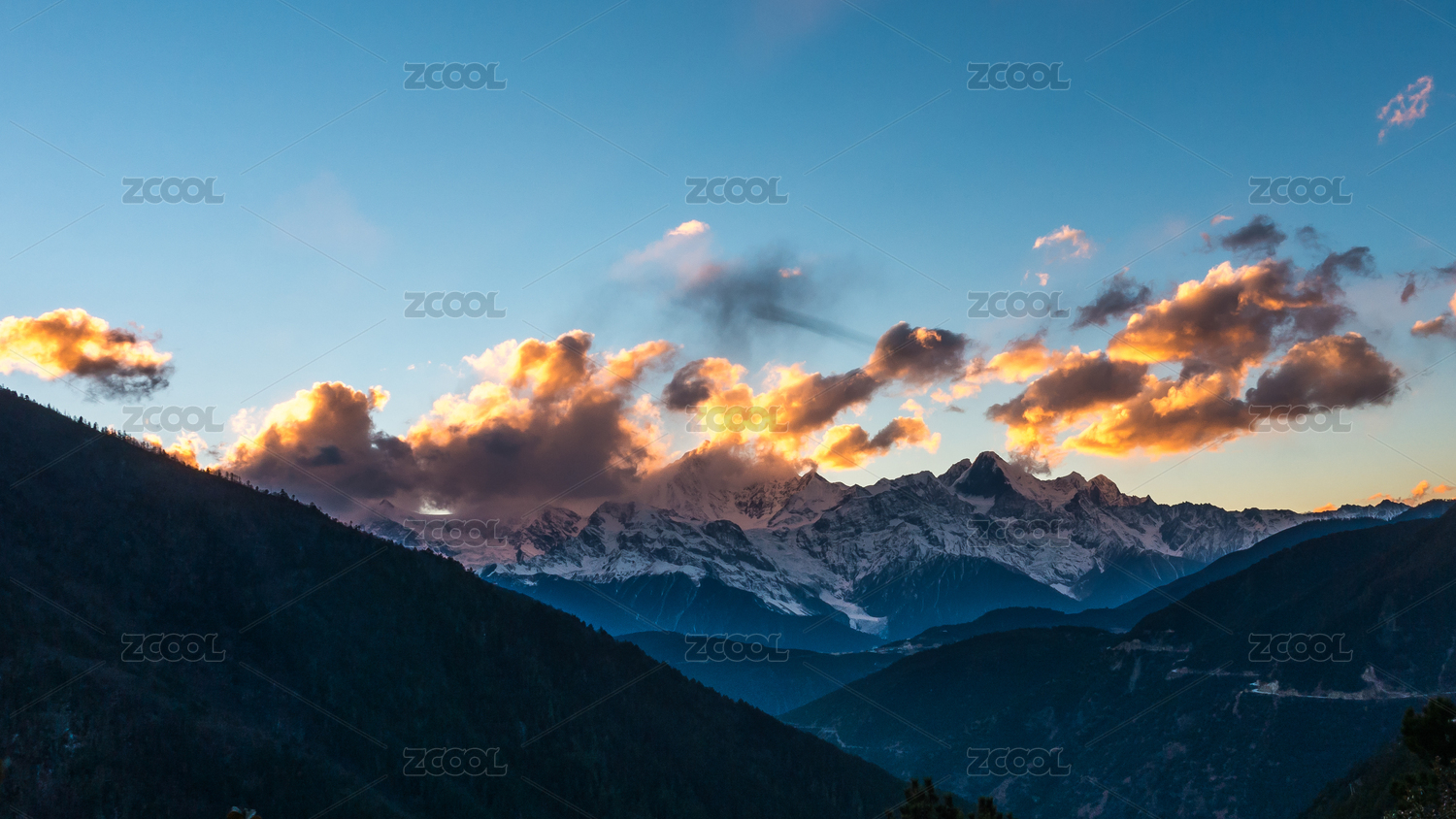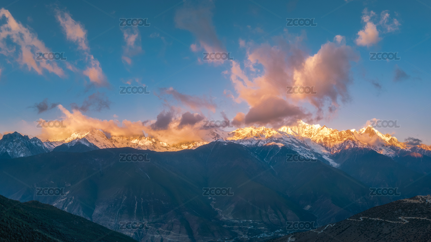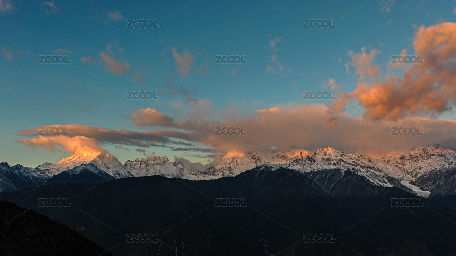 中国云南梅里雪山日落晚霞日照金山