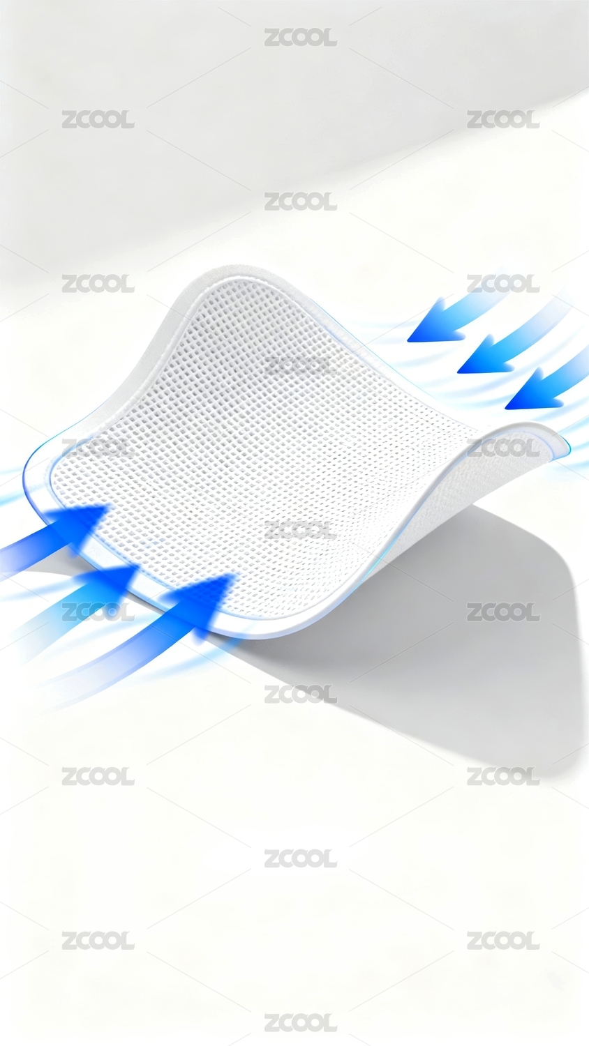 蓝色微观纤维带孔面料透气清凉分层结构图