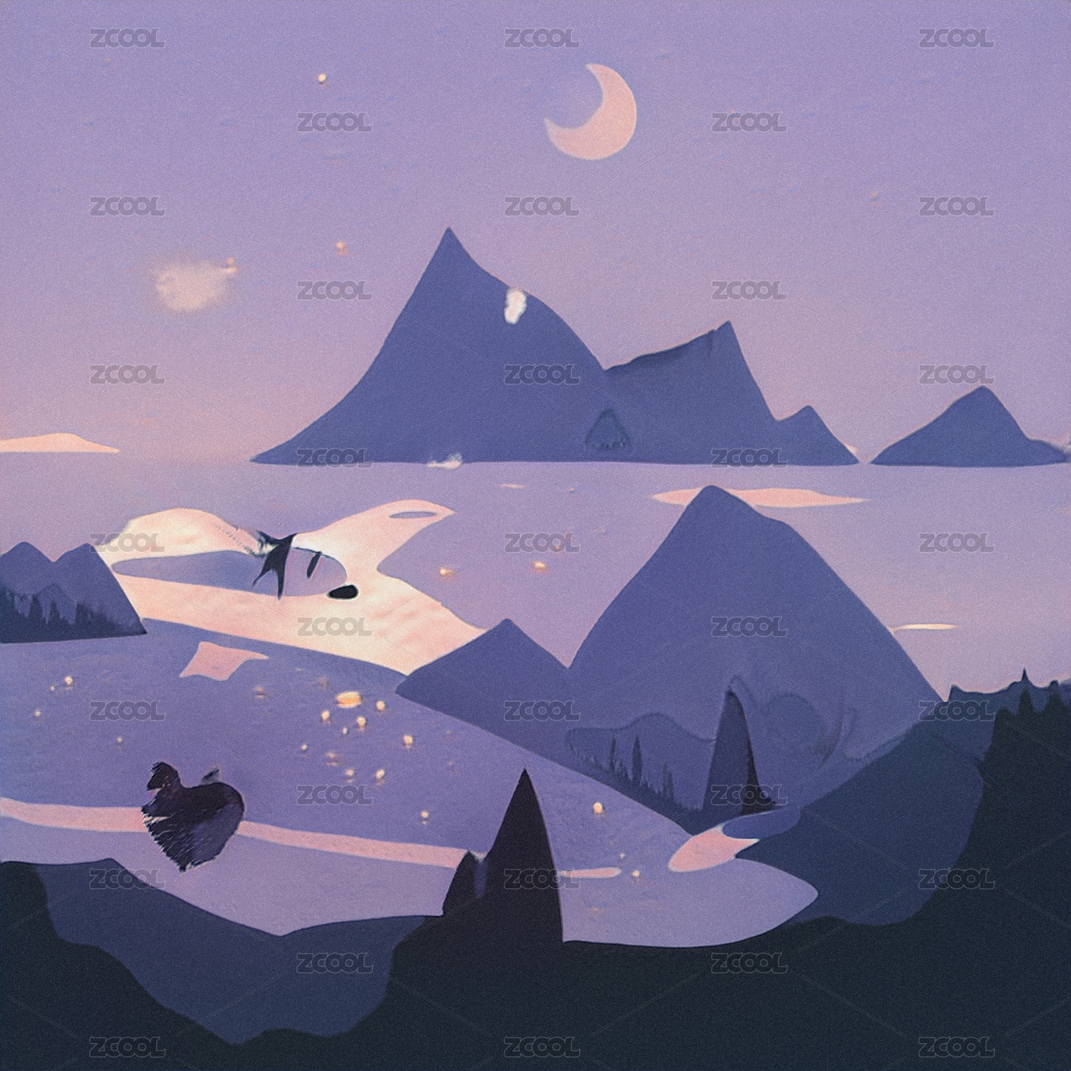 扁平自然风光插画