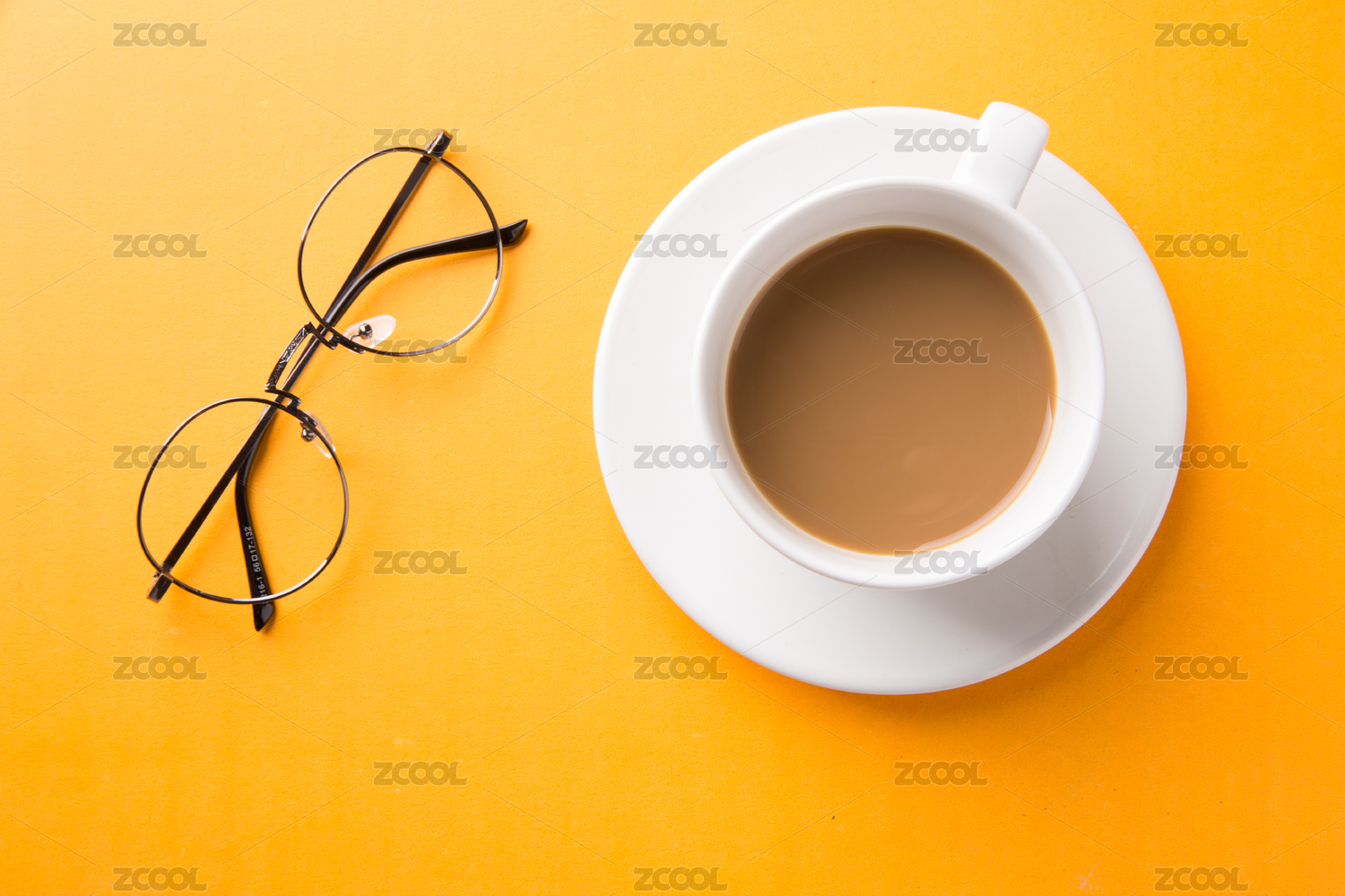 白色背景上的办公用品和咖啡笔记本电脑的高