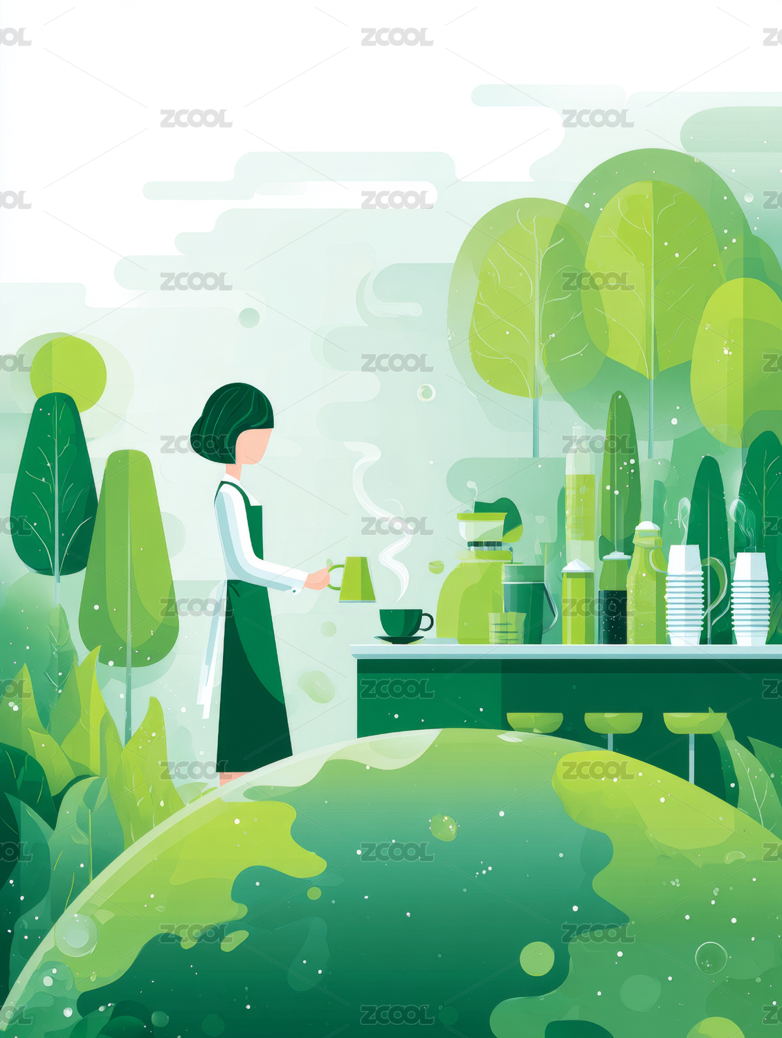 绿植,树木,种植,种树,绿色,环保,爱护,插画