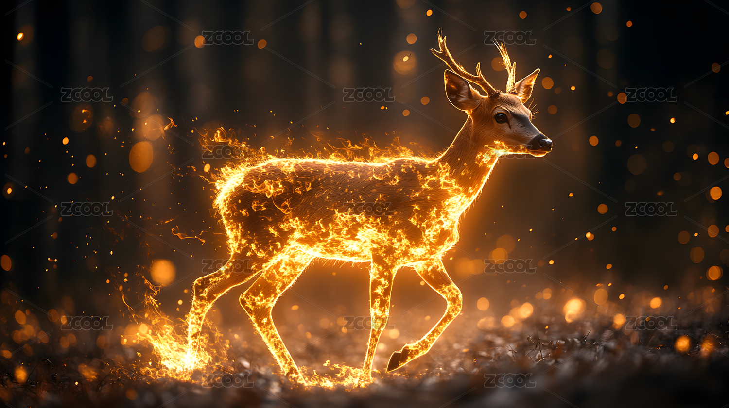 金色鹿在闪闪发光的光芒中