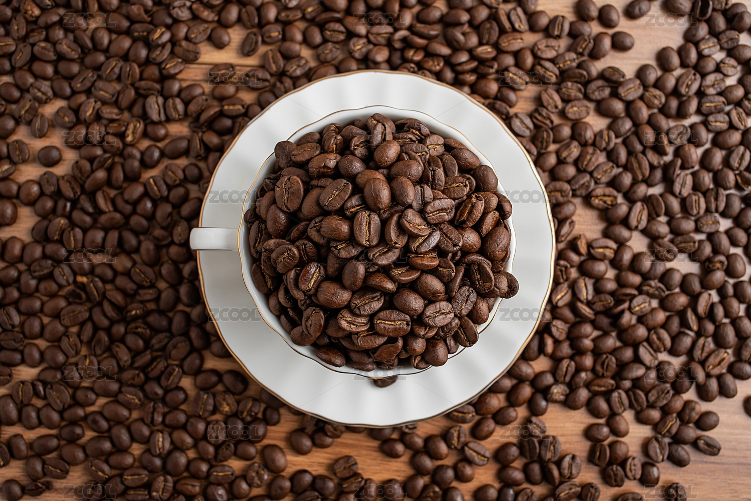 咖啡,咖啡豆,杯子,黑底,一堆豆子,食物