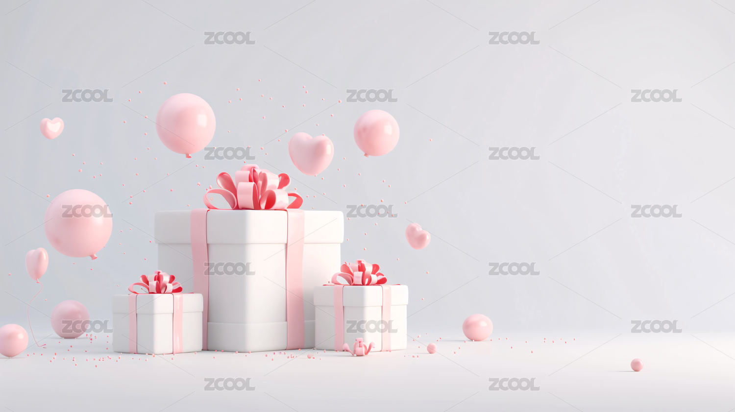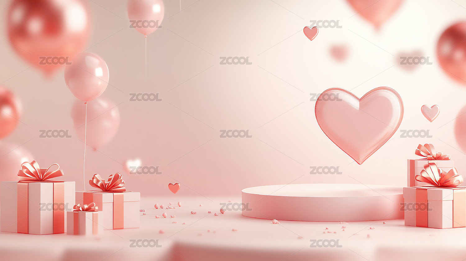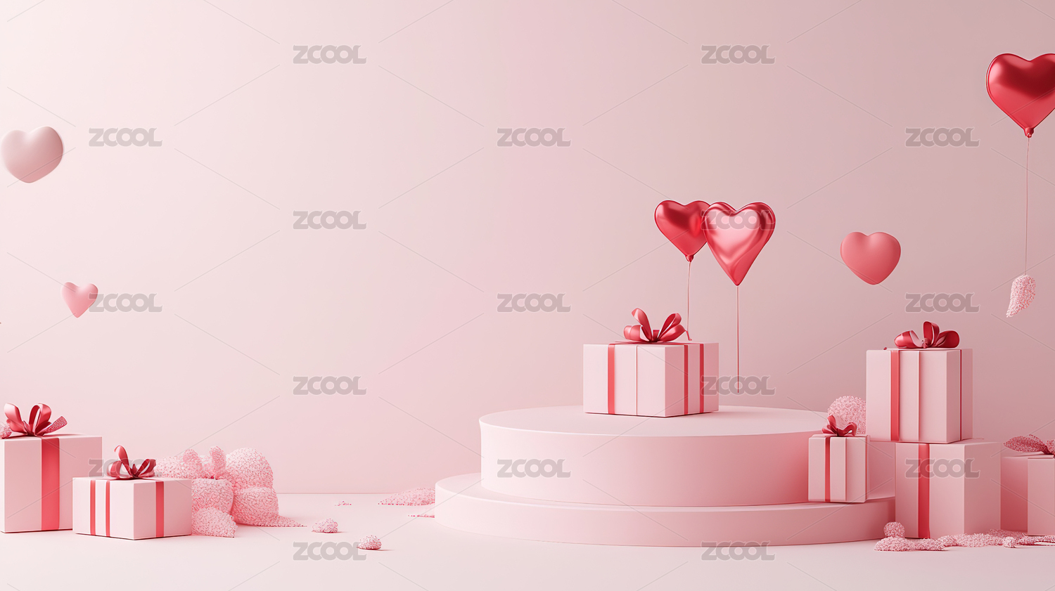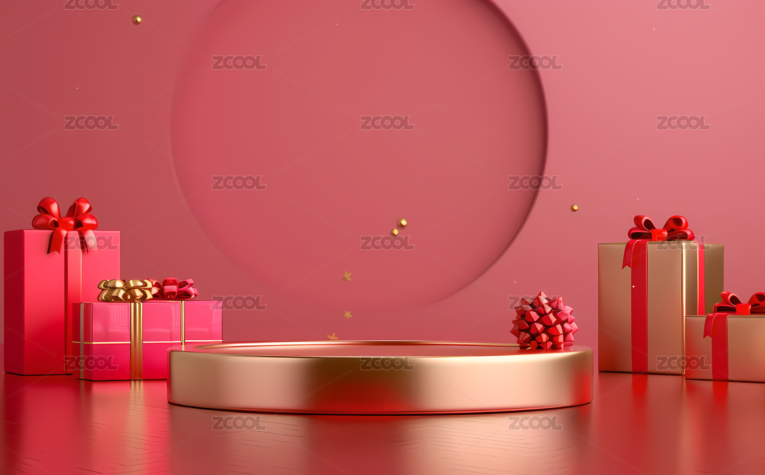 装饰着礼品盒的氛围感产品展台电子商务促销