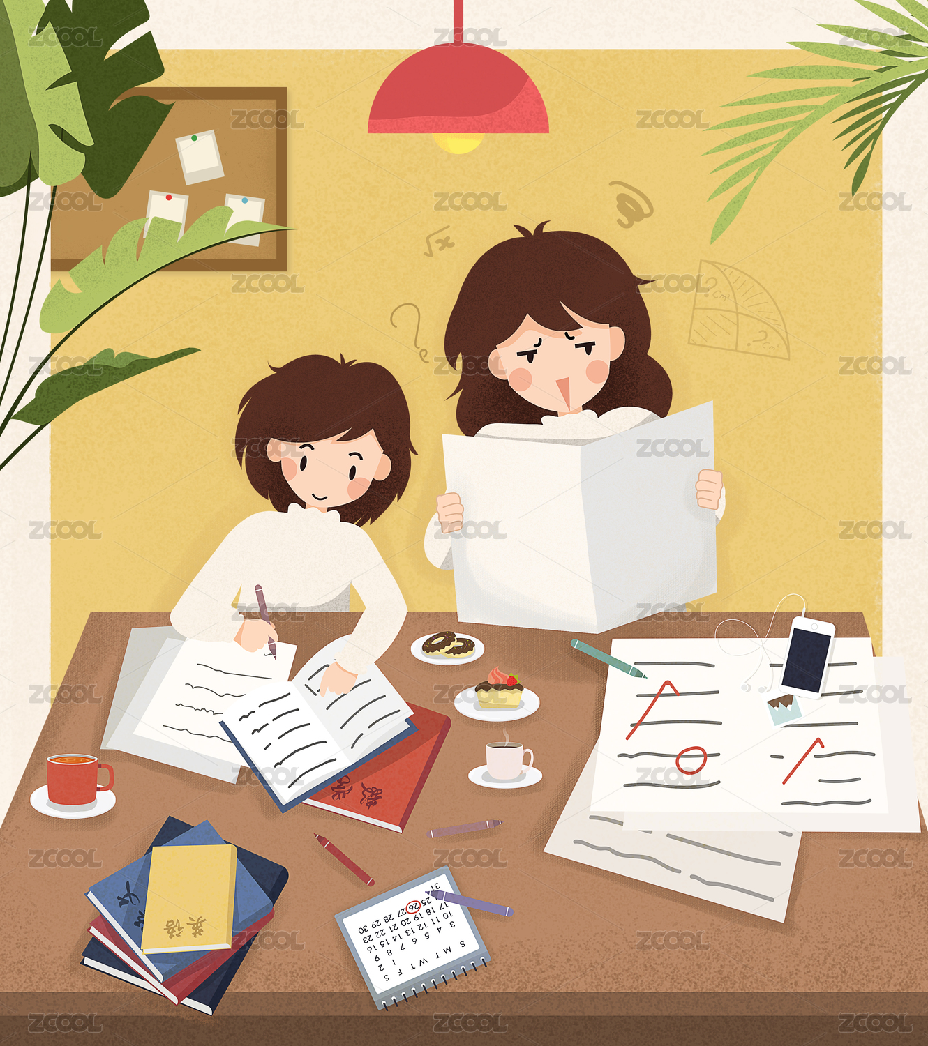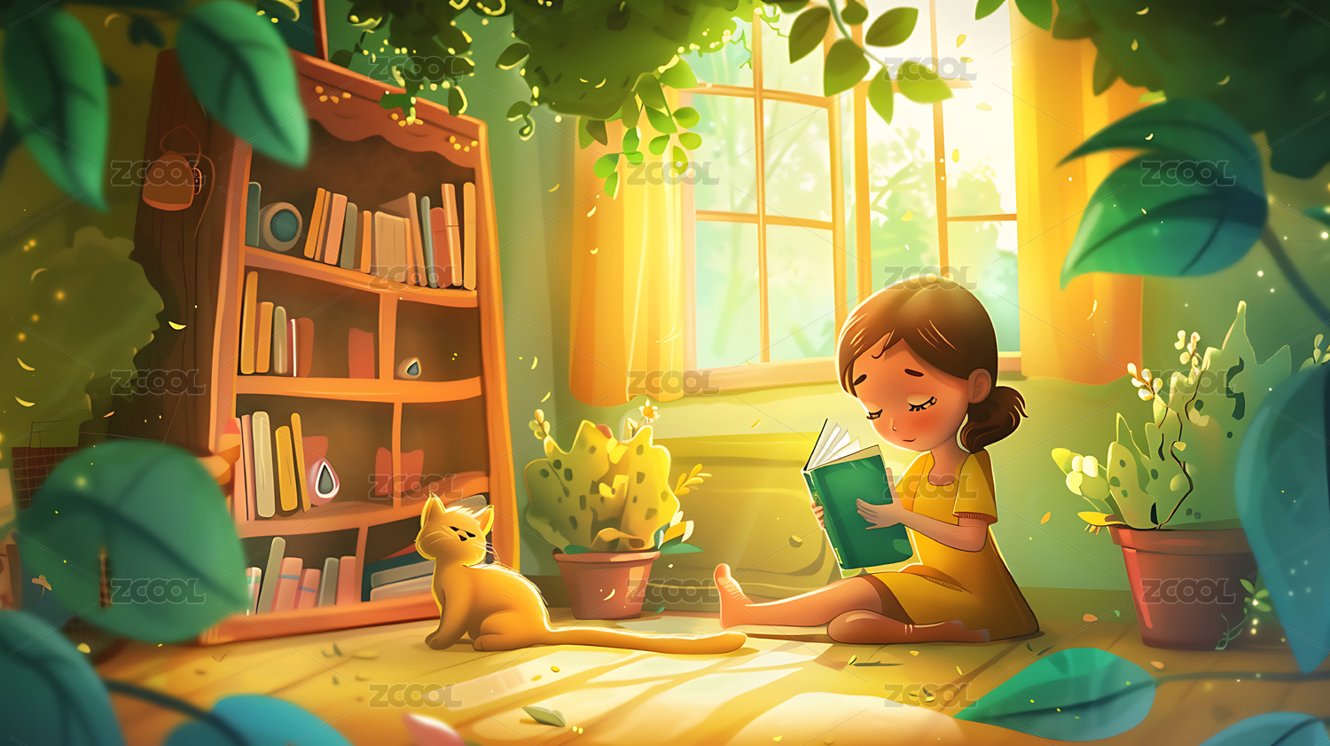 孩子们读书的书房插画