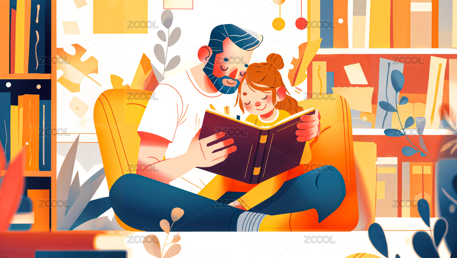 亲子阅读三维插画