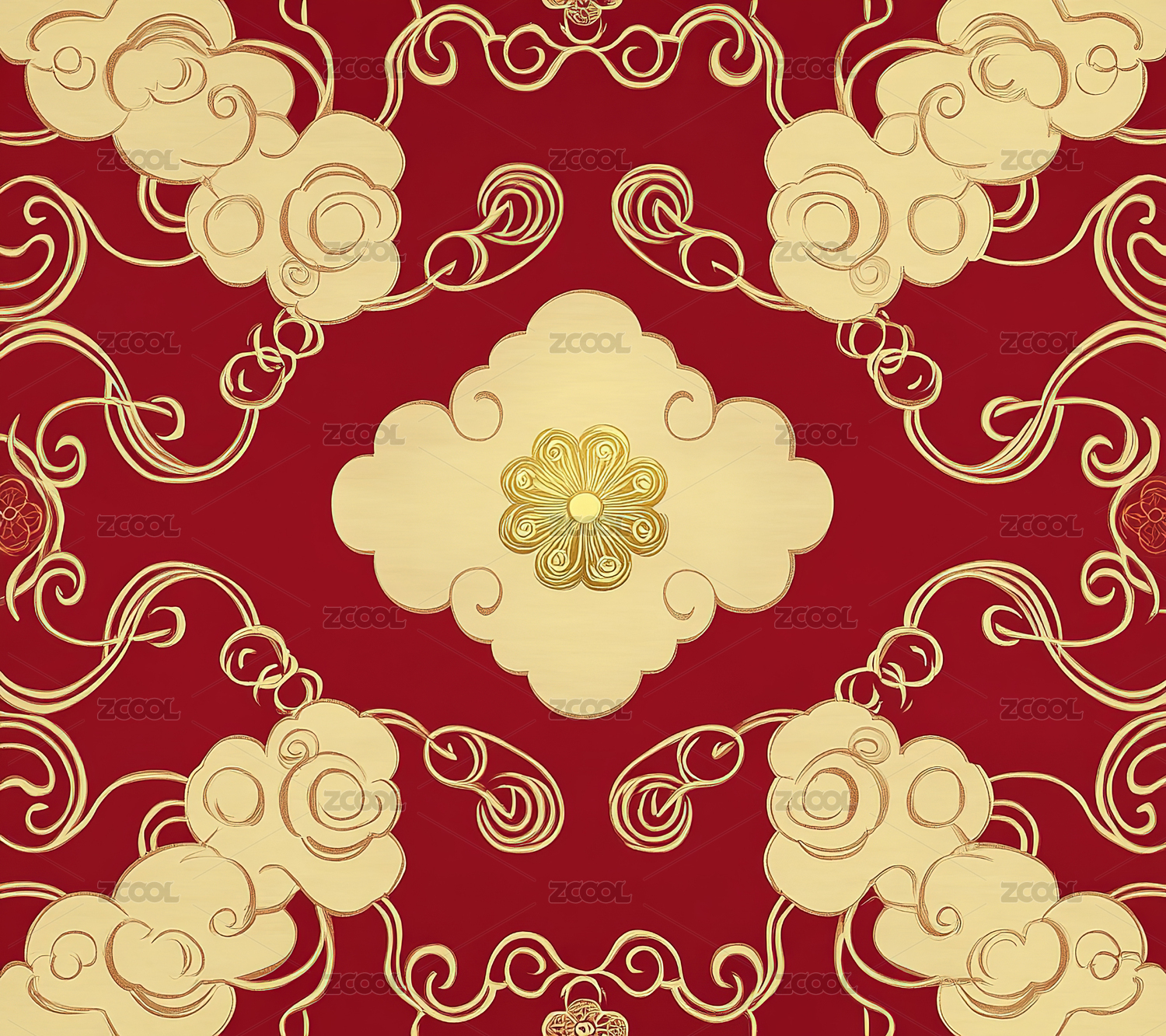 传统中式红色圆形云纹图案