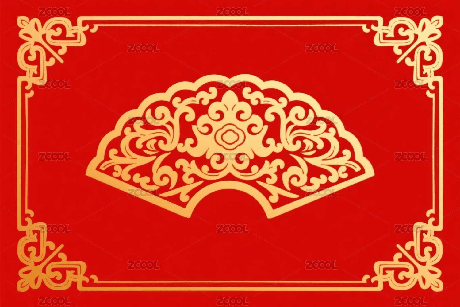 金色扇形中式装饰场景