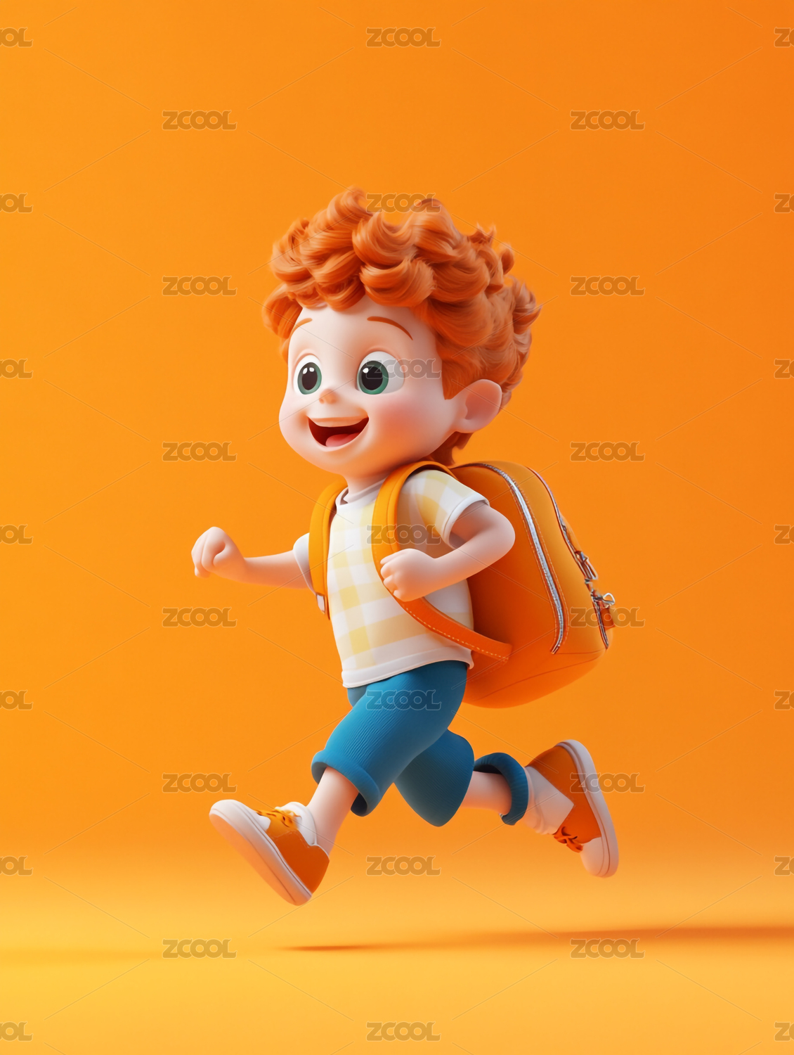 3D卡通背着书包奔跑的男孩