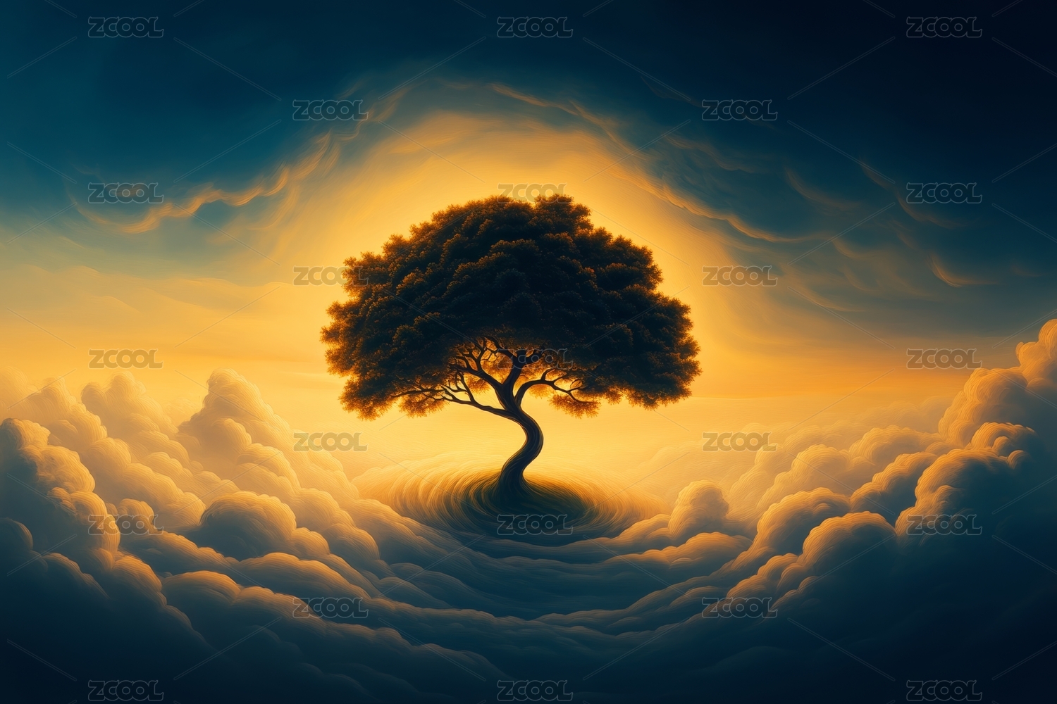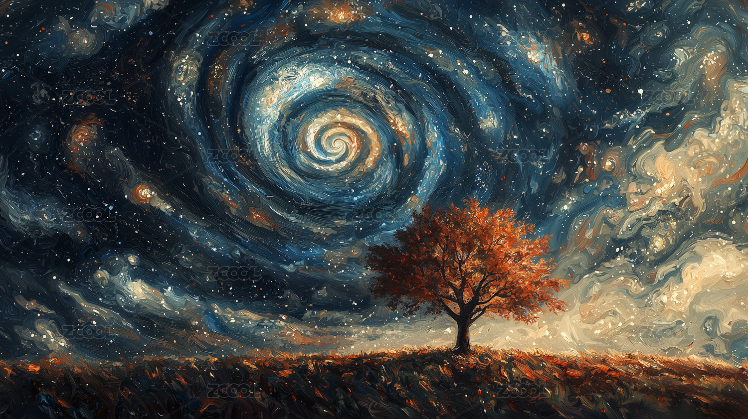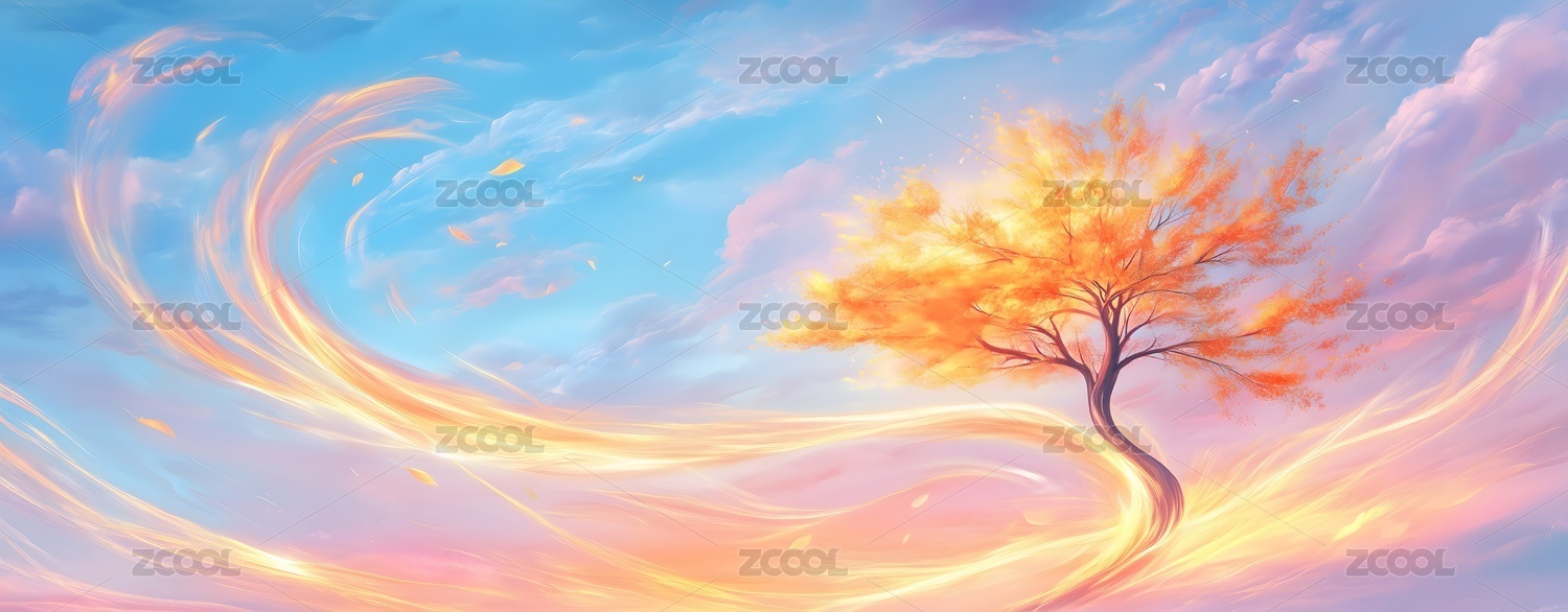 孤树,旋风,风景画,自然,秋天,红叶,梦幻,天空,美丽
