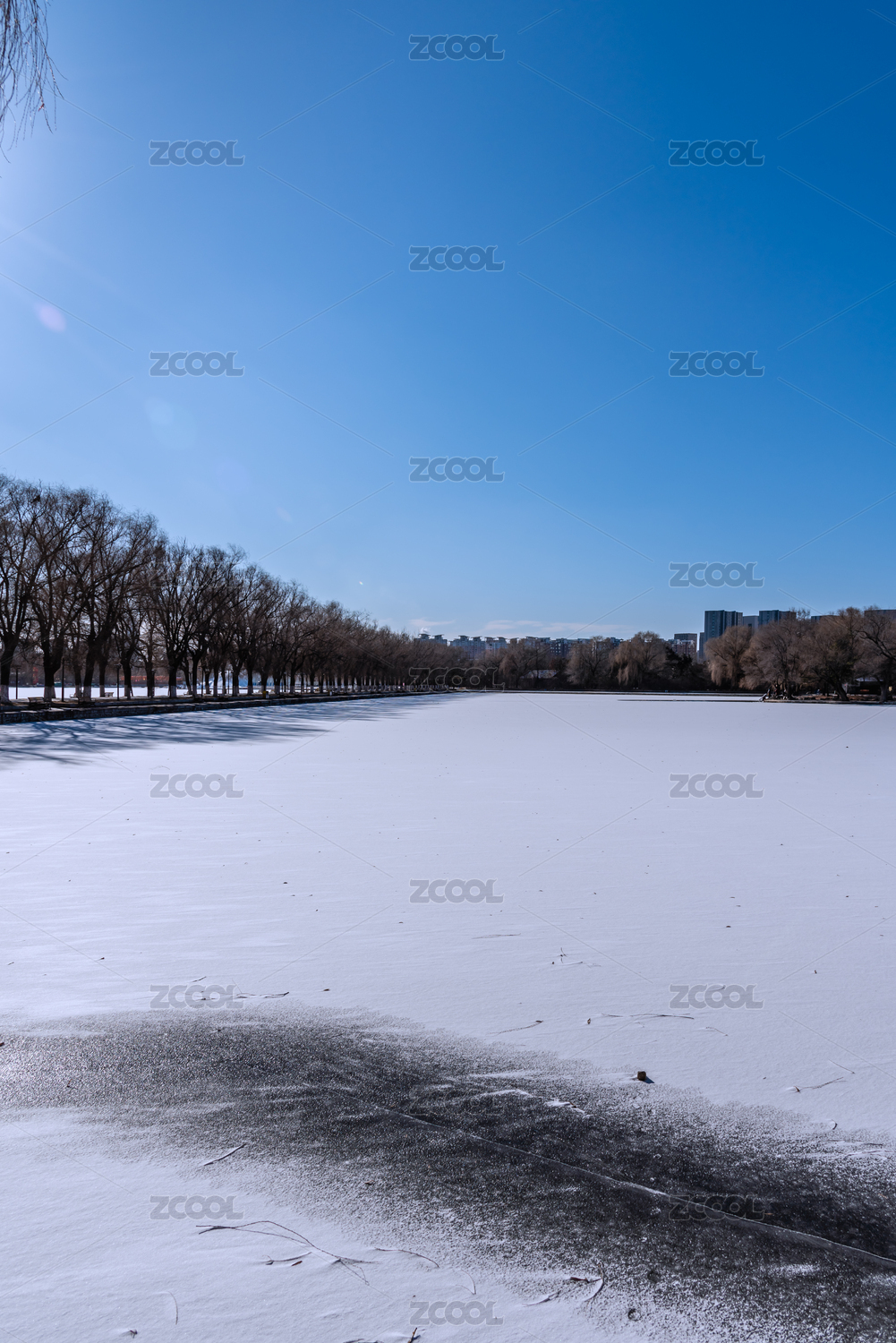 冬天中国沈阳北陵公园冰雪覆盖的湖面