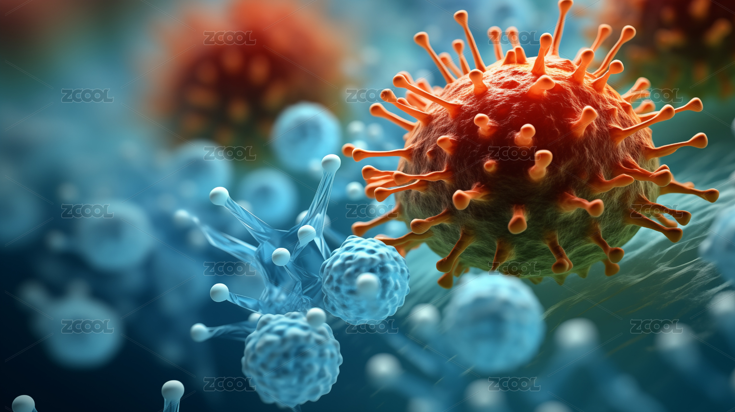 3D病毒细胞渲染图