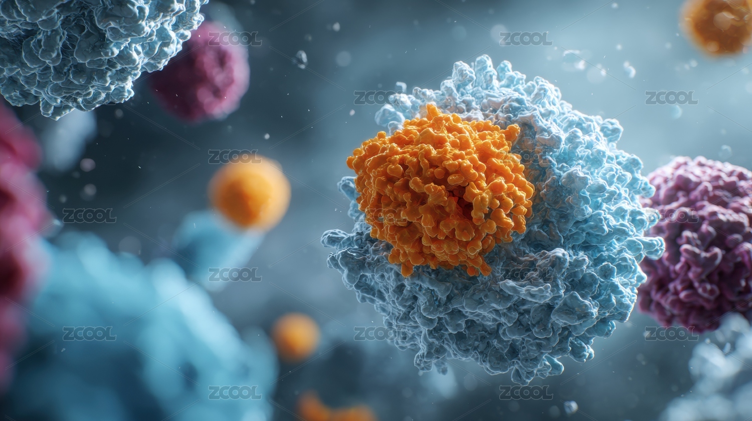 3D抽象显微镜下的免疫细胞