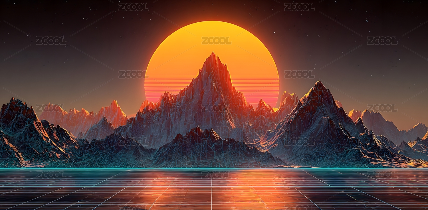 风景,地形,自然,户外,日落,自然美,天空,插画,背景