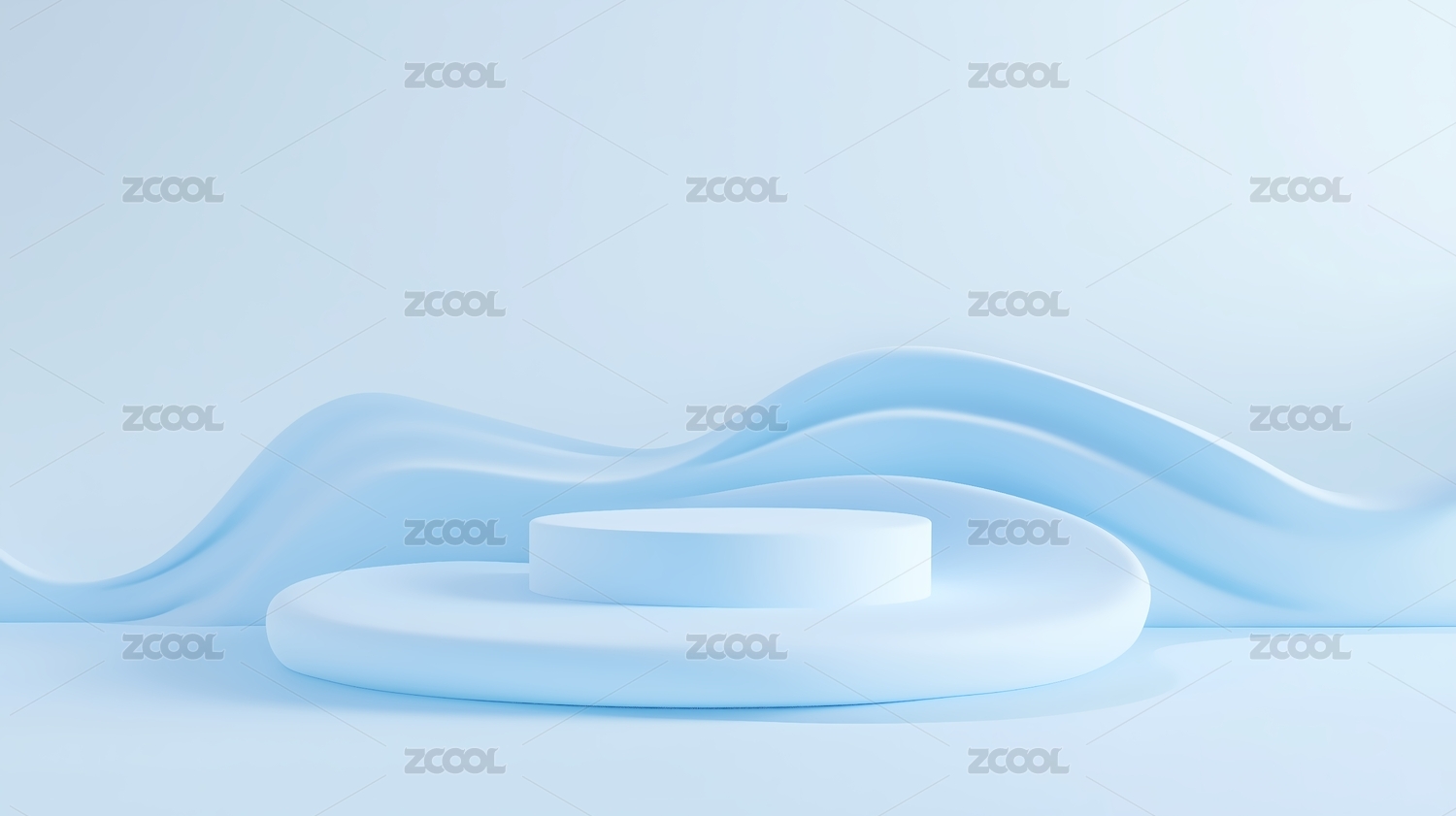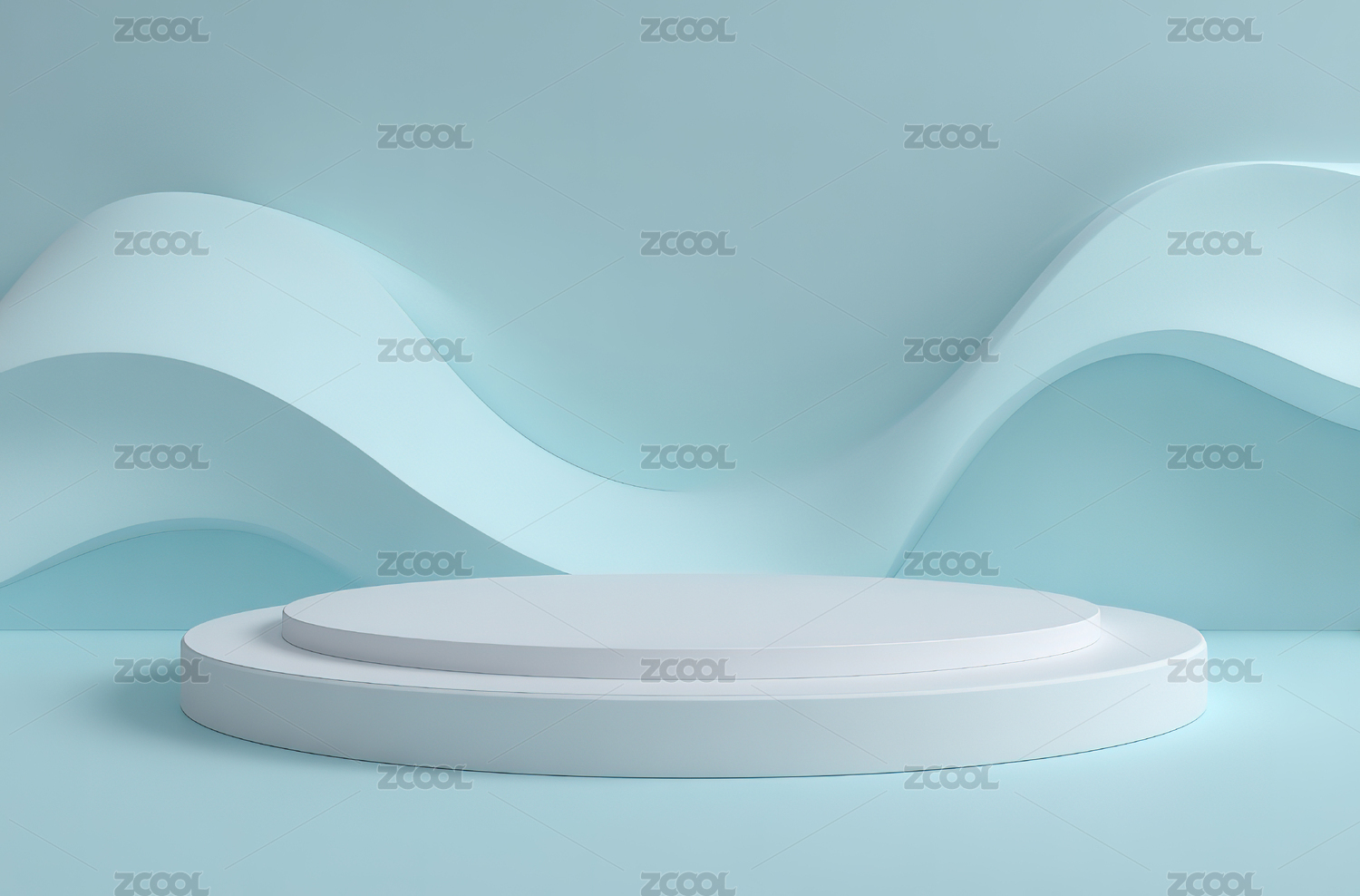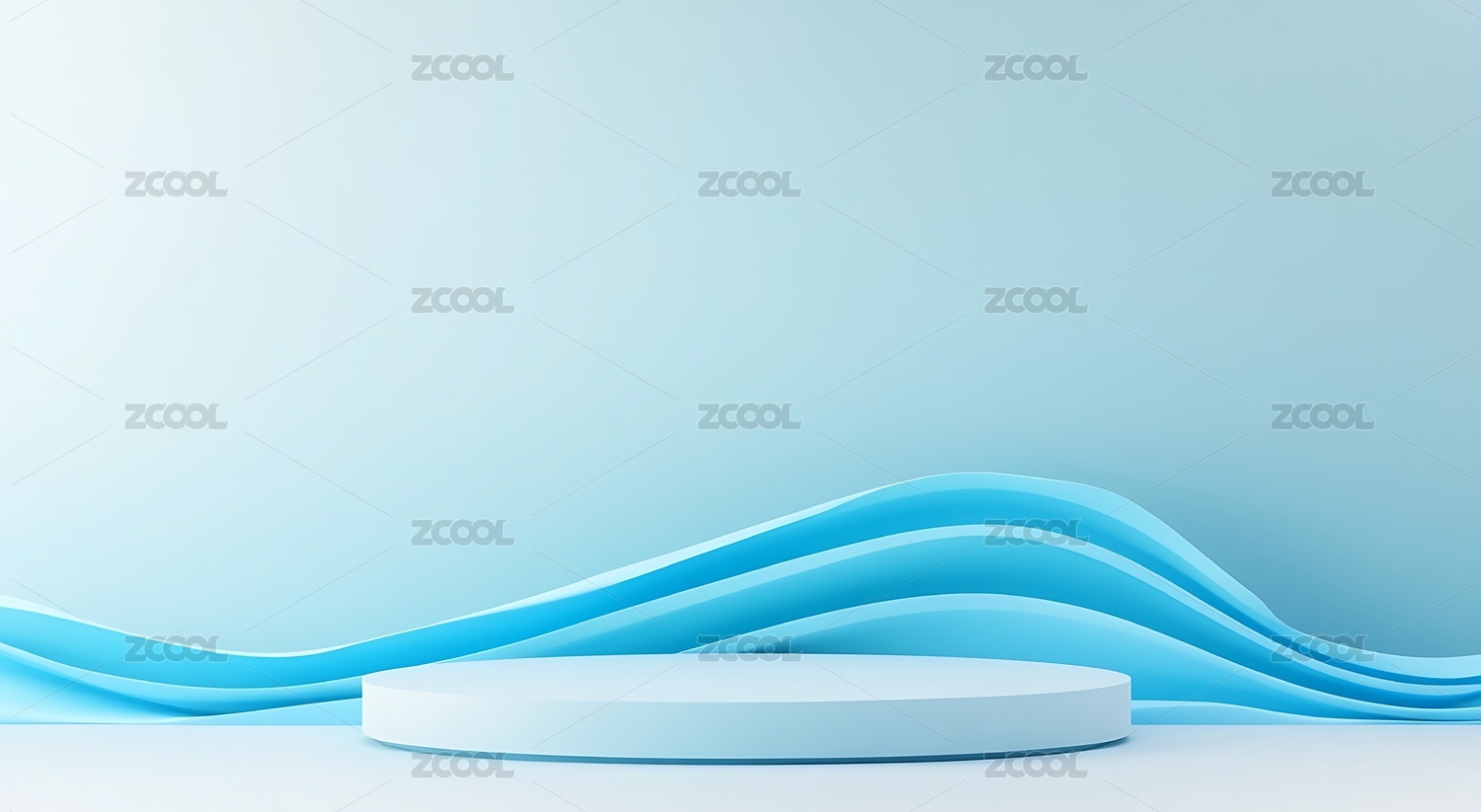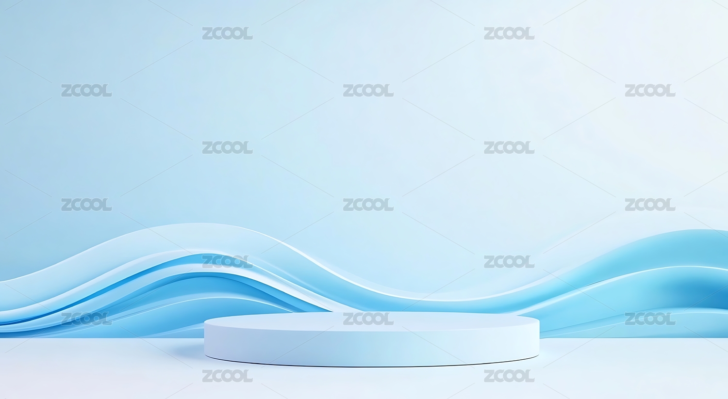 简约白色展台与波浪背景