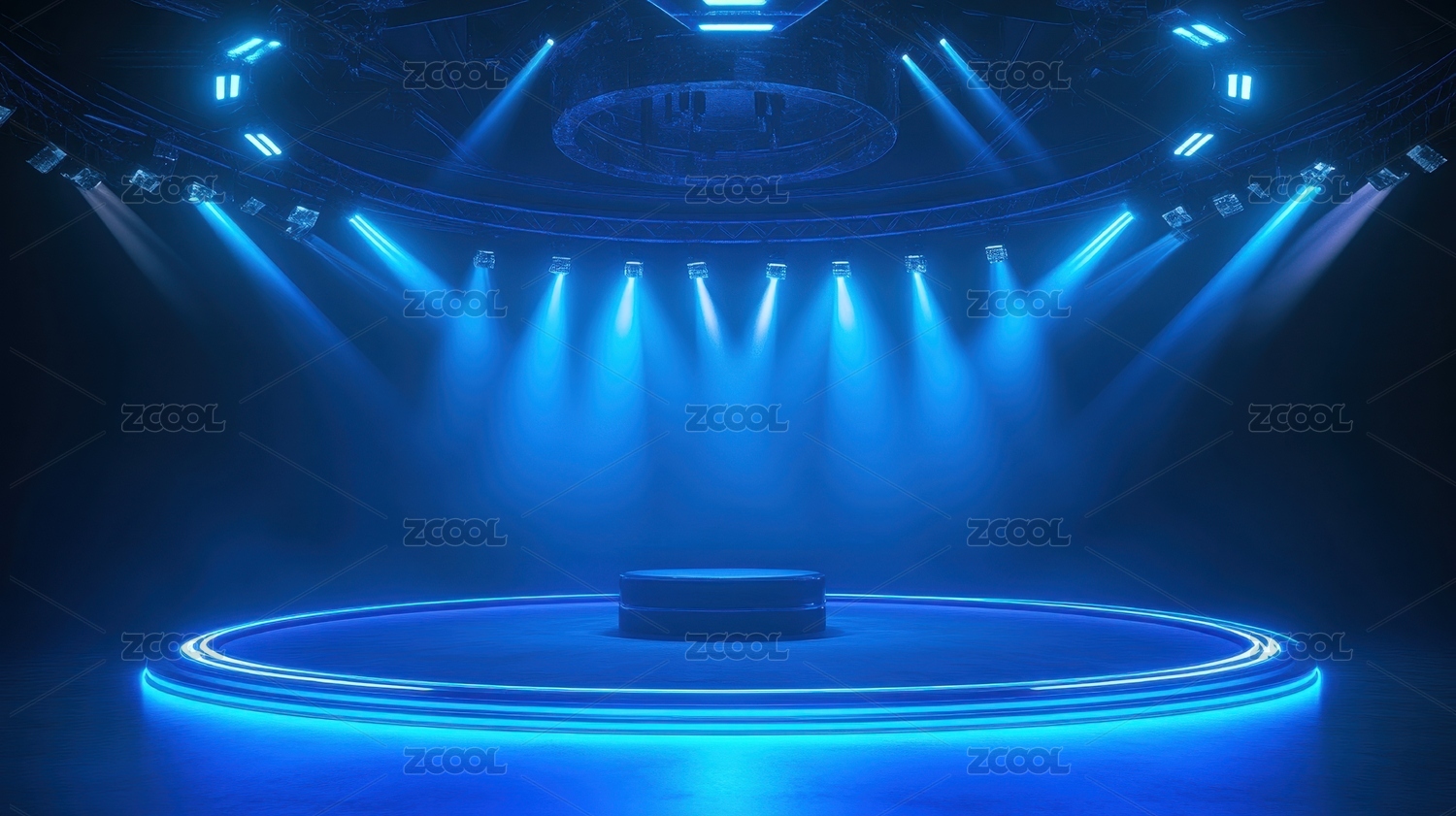 蓝色背景下桌子上的蓝色灯光特写镜头