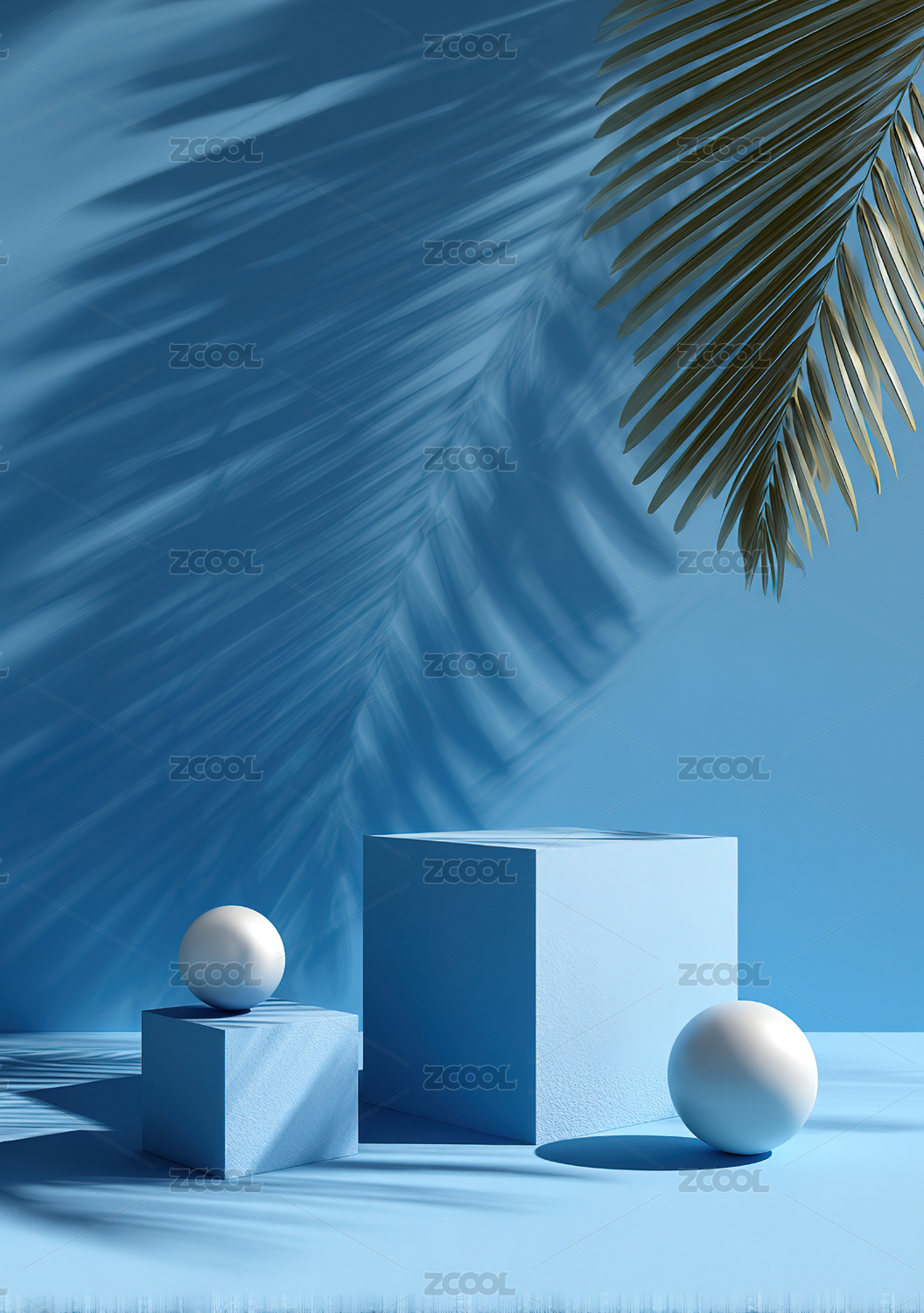 蓝色背景下的树叶和圆形图案