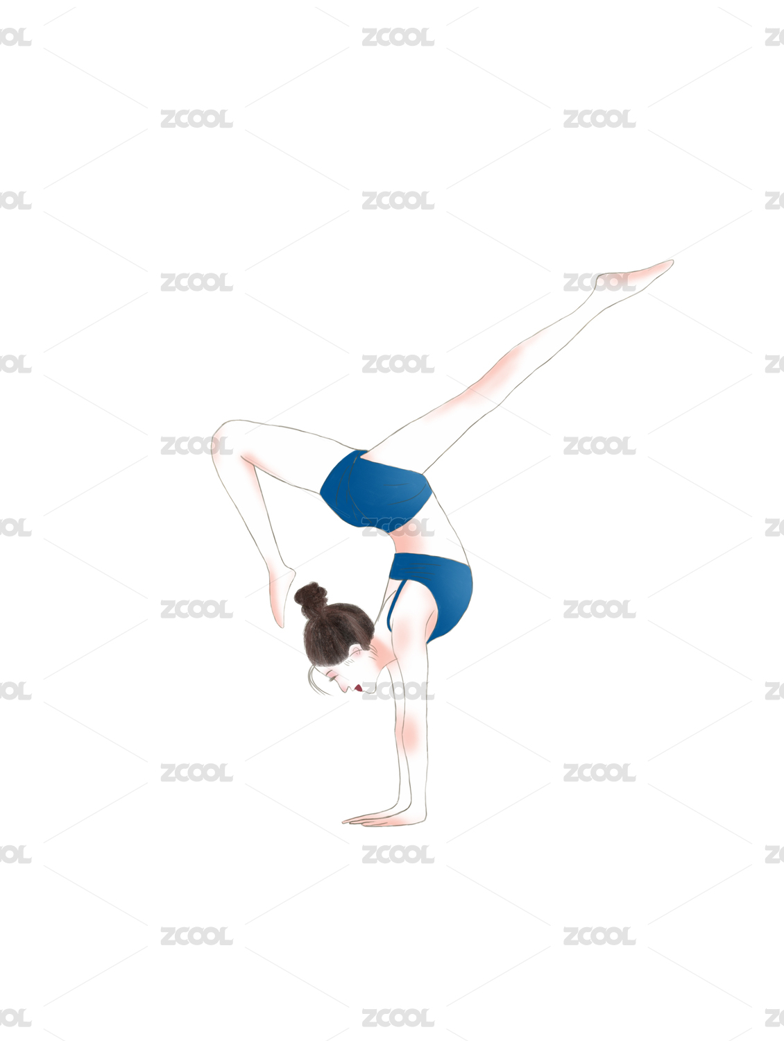 手绘跳舞锻炼健身跳操运动姿势优雅的女孩