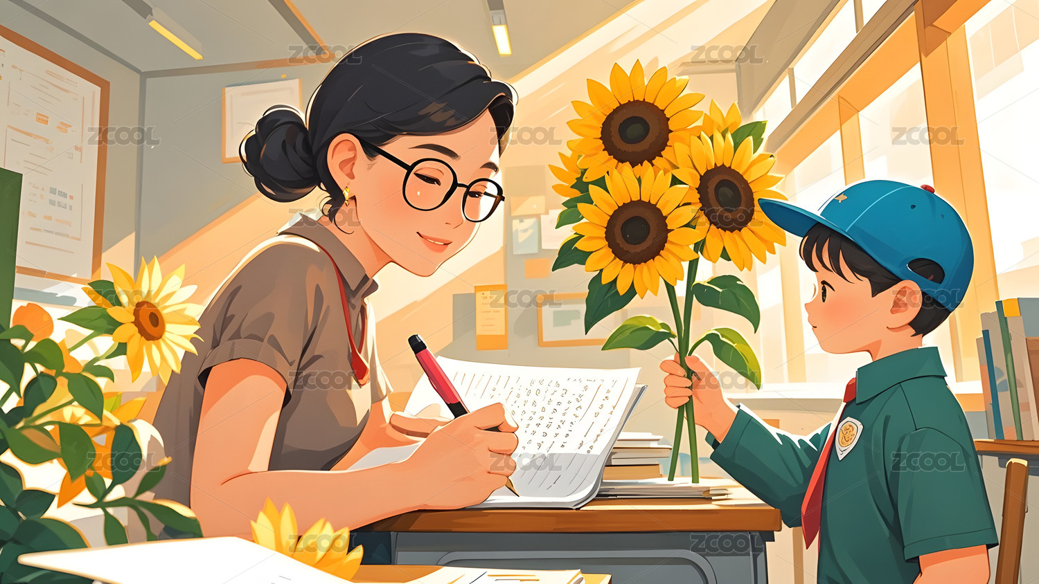 老师,学生,教师节,教科书,讲台,鲜花,校园,教室