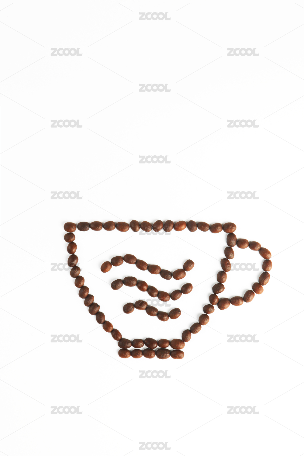 咖啡豆组成的咖啡杯碟与咖啡豆图形