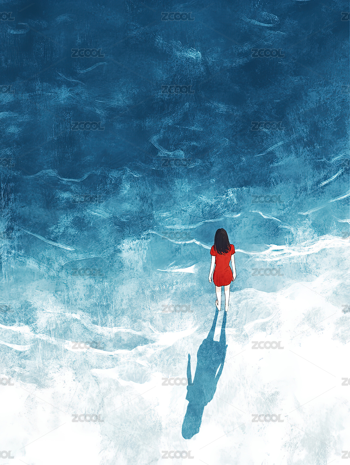孤独的女孩儿插画