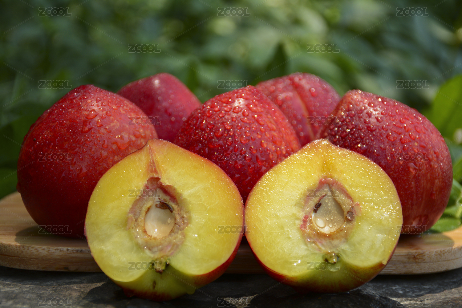 新鲜的茂名钱排银妃三华李中的一个被切开露出紫红色果肉