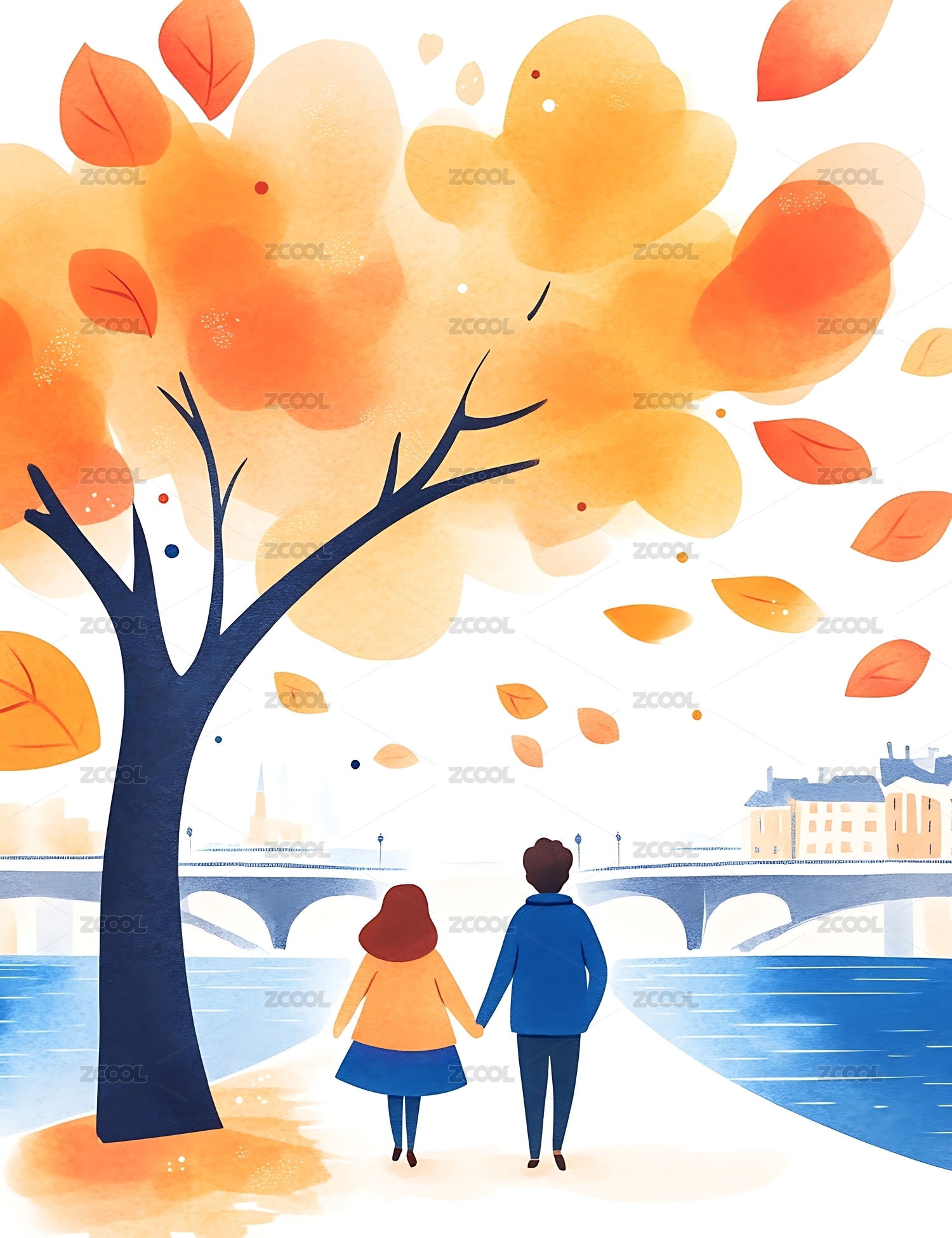 秋天秋游立秋秋分户外活动运动卡通漫画插画