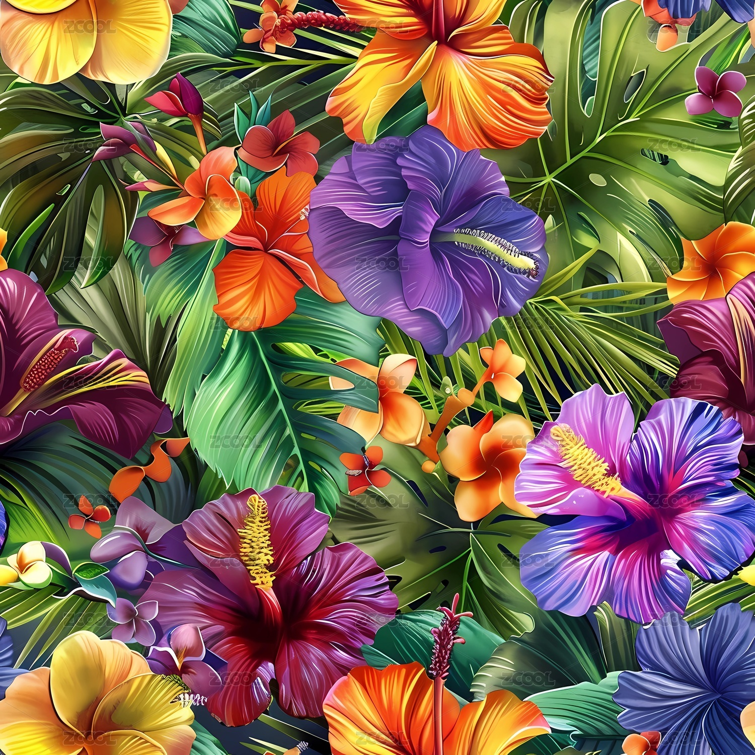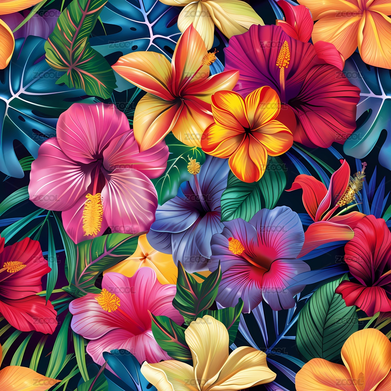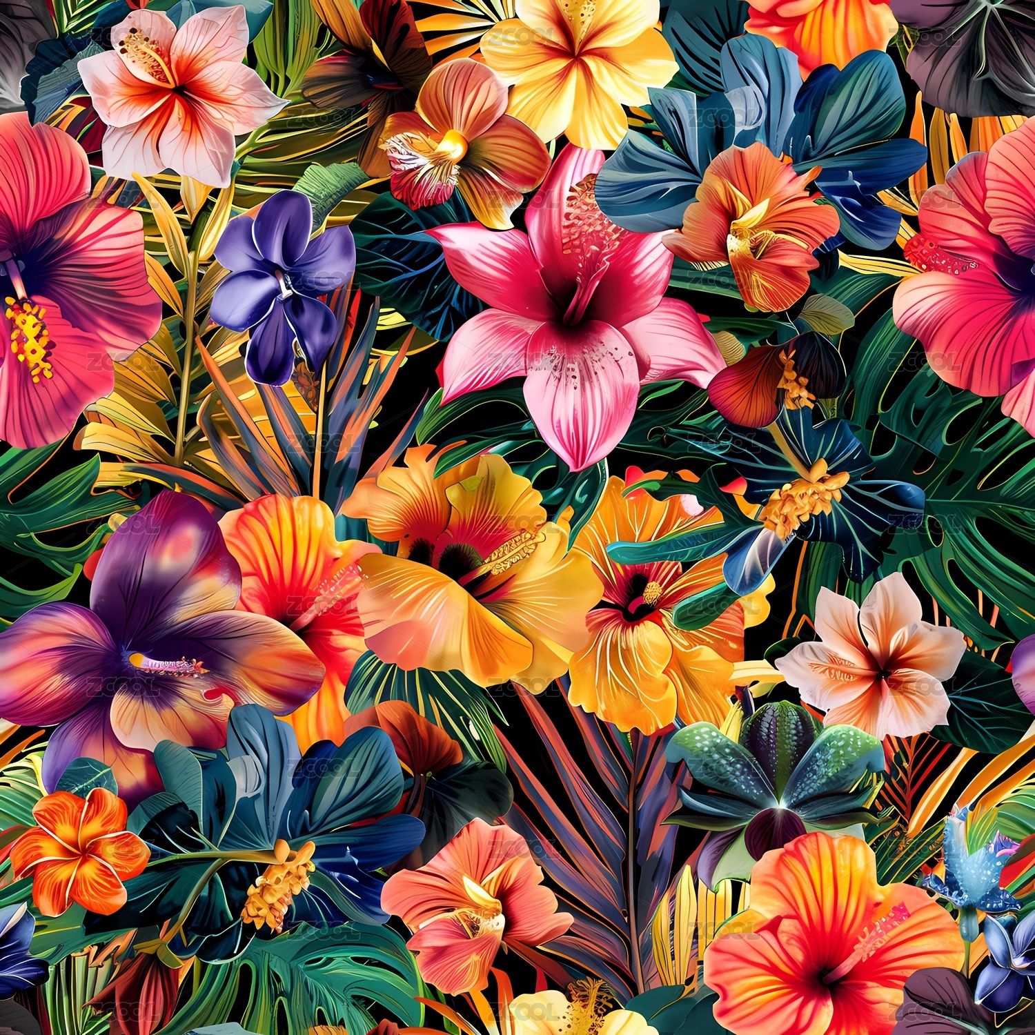 彩色线条花卉重复无缝图案纺织品装饰背景