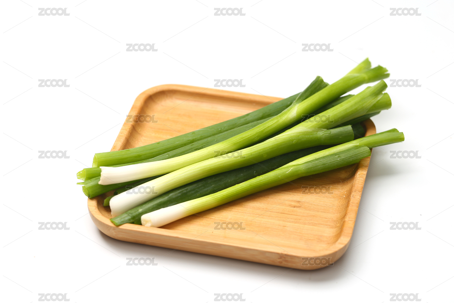 木盘上的新鲜大葱