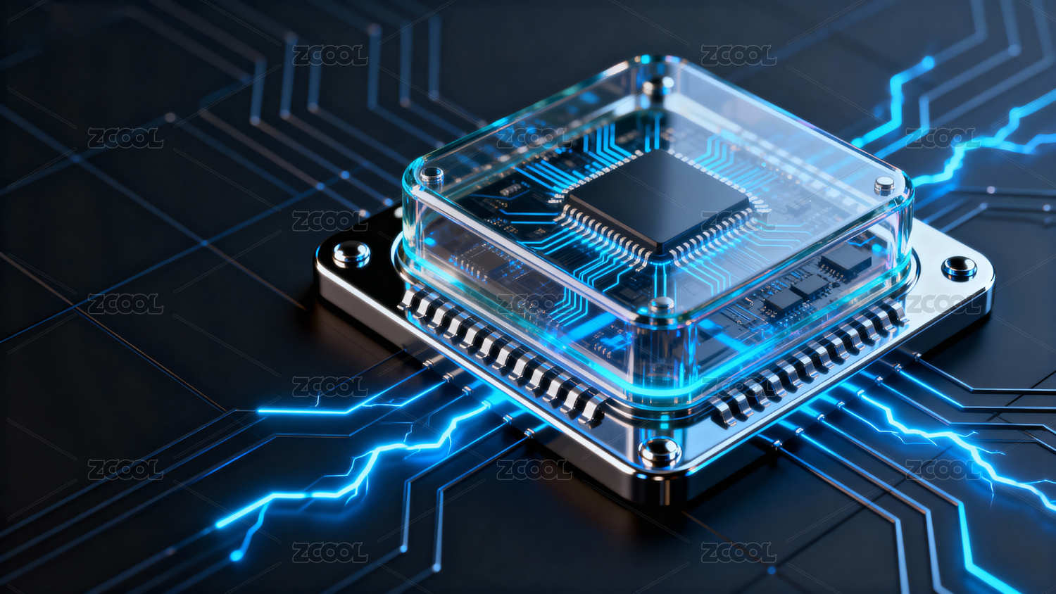 芯片金融科技赛博朋克人工智能三维渲染电路