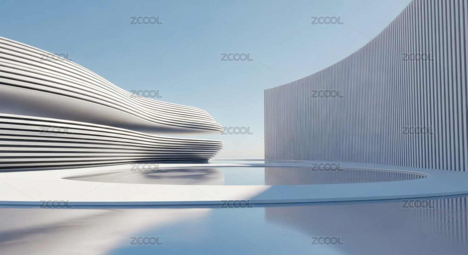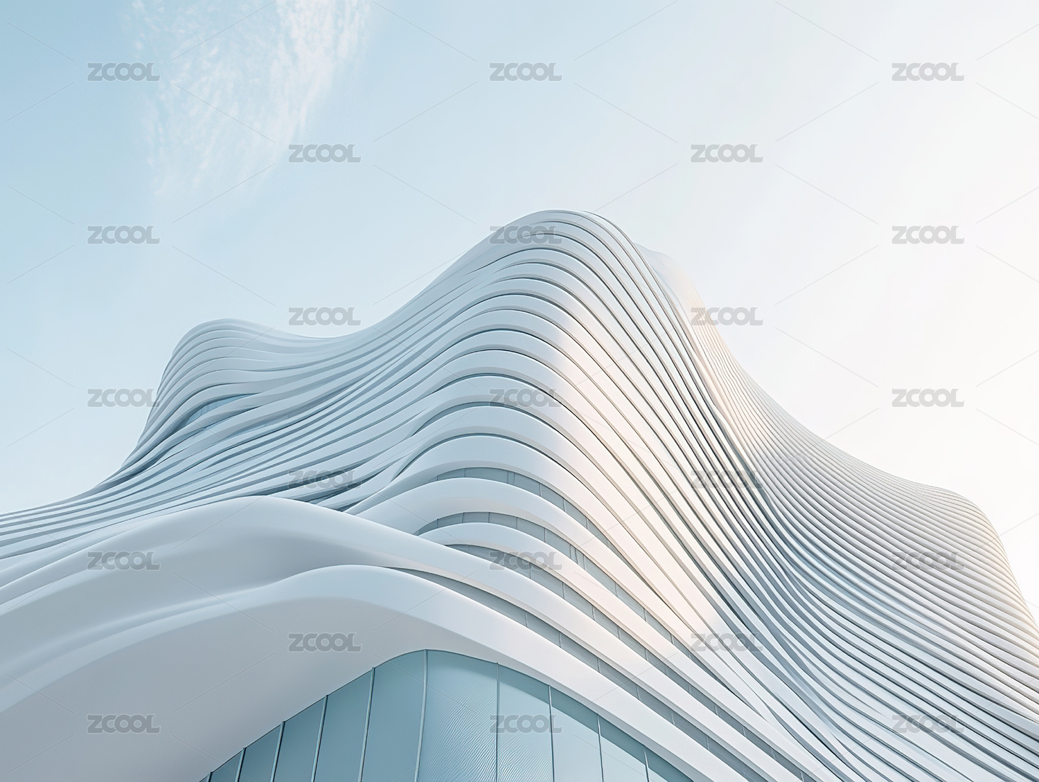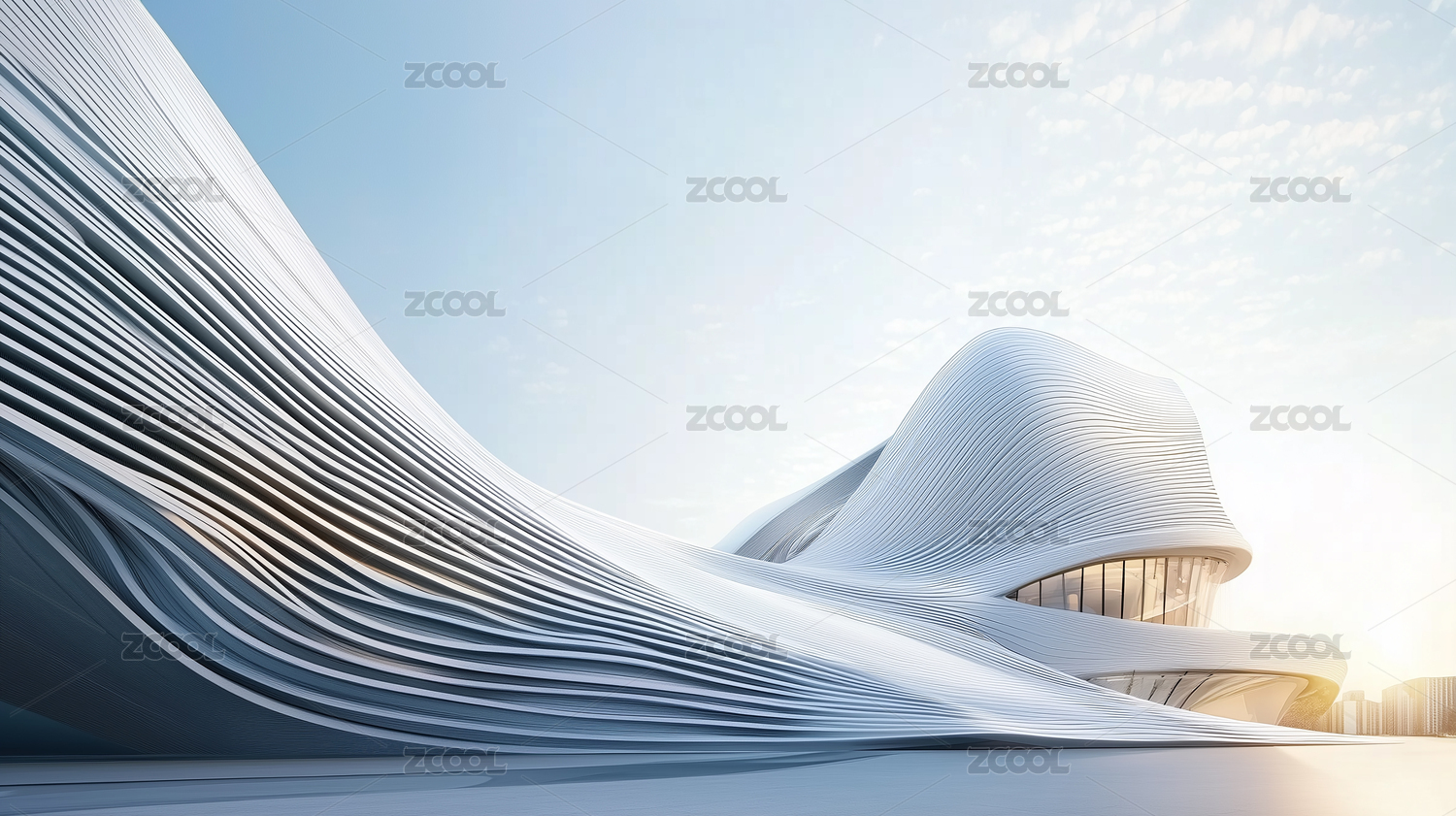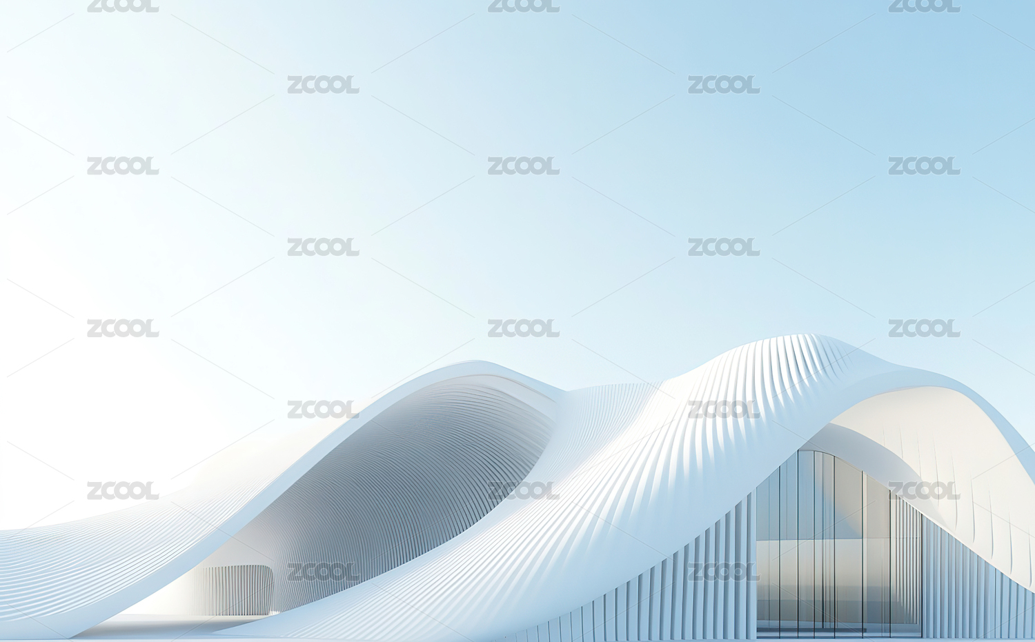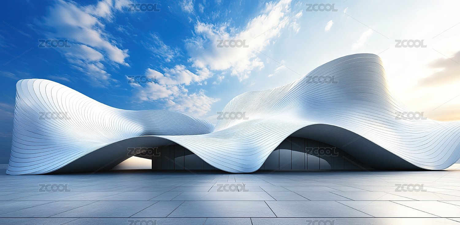 建筑,白色,线条,波浪,山丘形状,光泽,晴朗,蓝天,未来,科技感