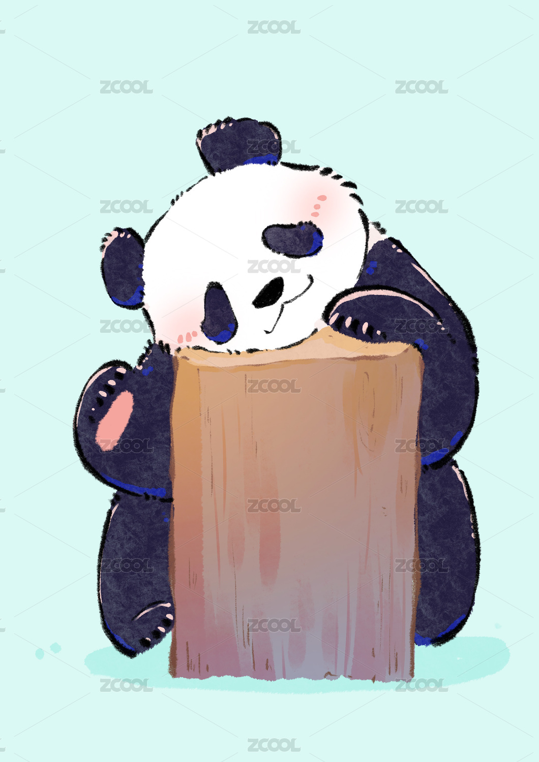 手绘卡通熊猫插画