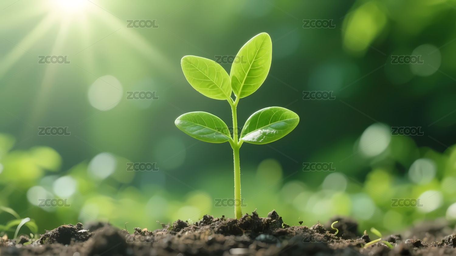 嫩绿小苗破土阳光照射