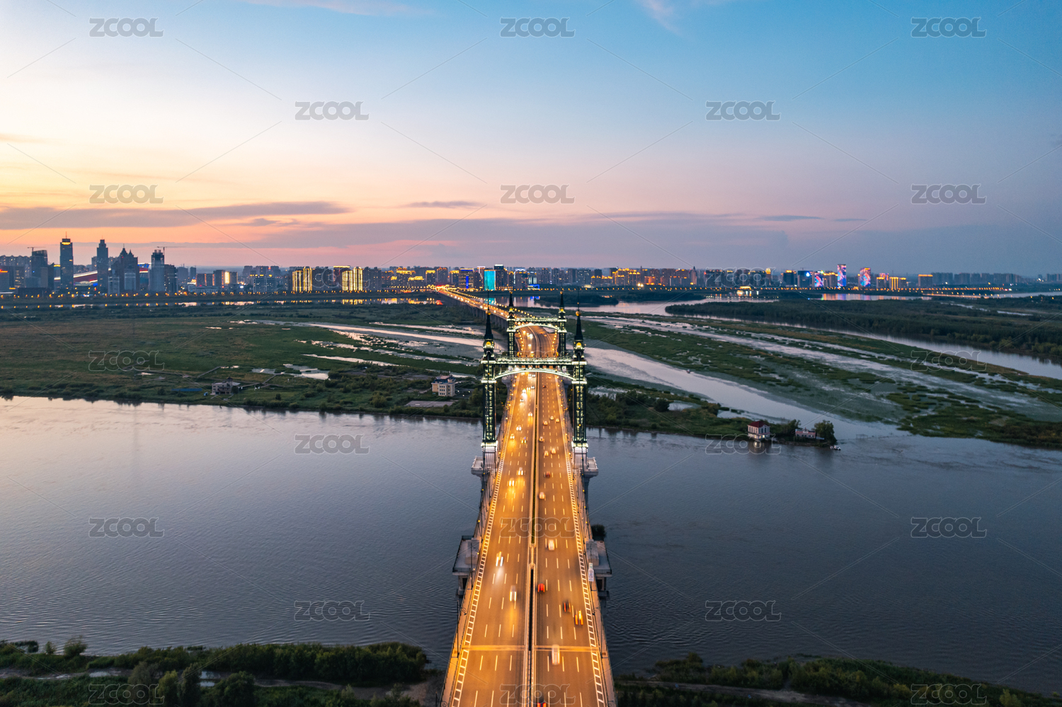 交通,全景,哈尔滨,城市,夜景,建筑,松花江,现代,航拍,运输