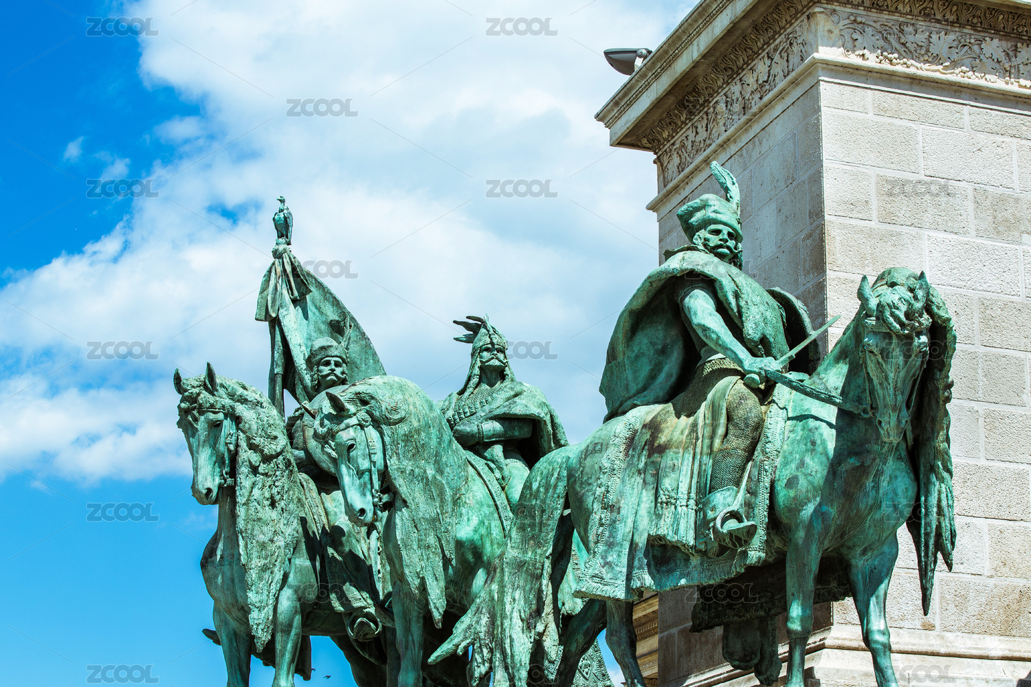 匈牙利首都布达佩斯市英雄广场上的石雕建筑