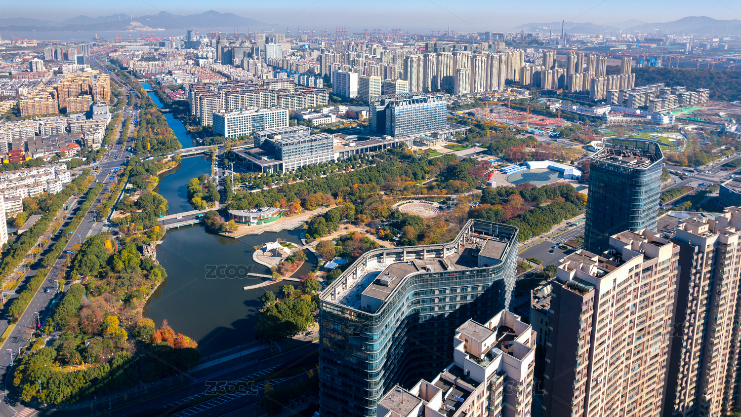 绍兴市上虞区曹娥江两岸城市风光航拍