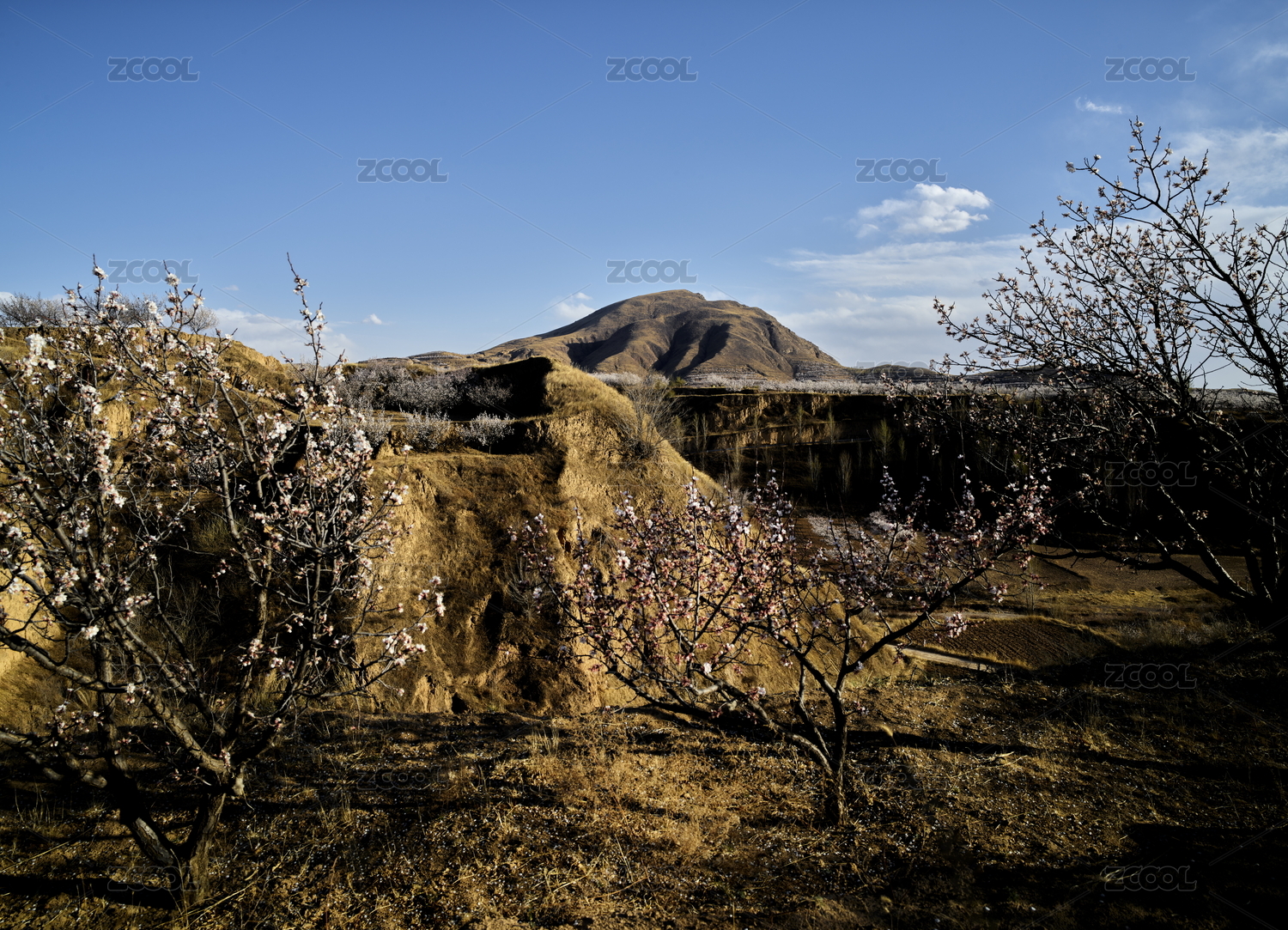 春天来了黄土岭上杏花开放