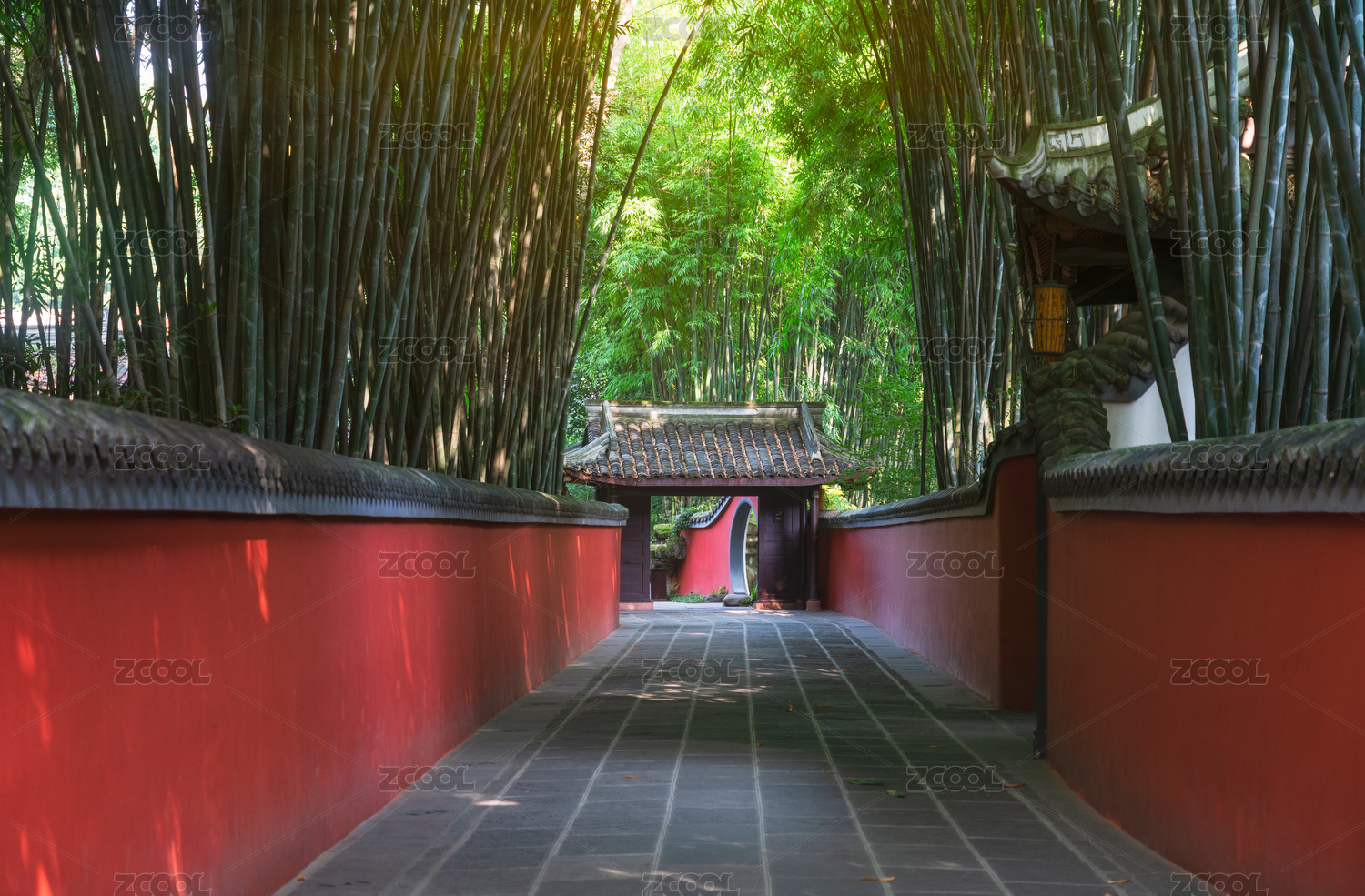 中国成都杜甫草堂博物馆花径竹林与红墙